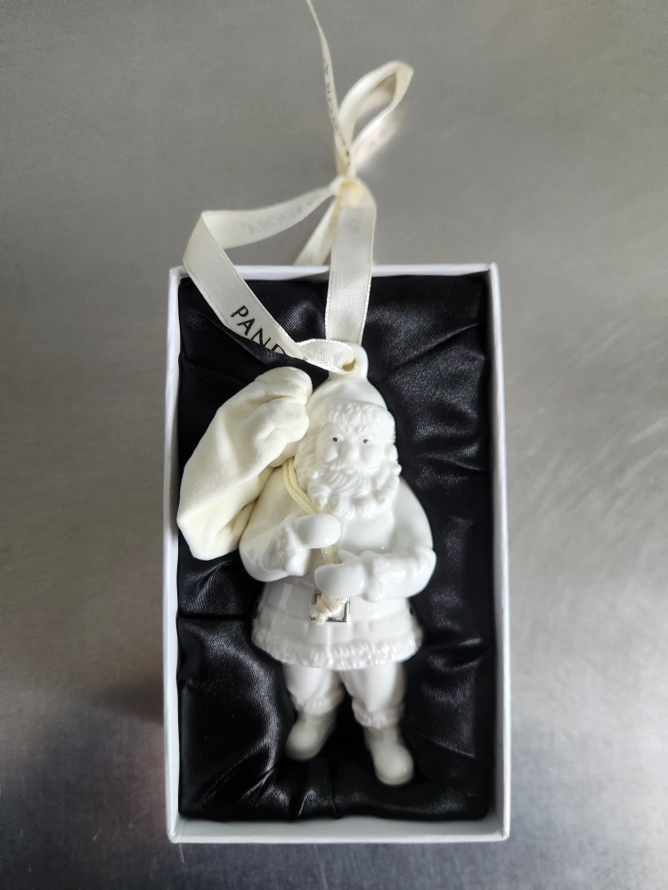 Selling a brand new Pandora Santa ornament, still in its original box! This charming ornament features a detailed Santa Claus figure in white, perfect for adding a touch of elegance to your Christmas tree or holiday decor. The box is included, making it a great gift or collectible item for any Pandora enthusiast