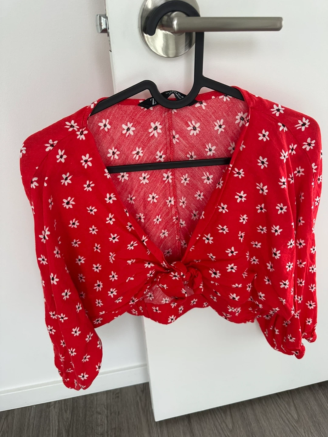 170This is a cute Zara crop top in a red floral print! It's a size small