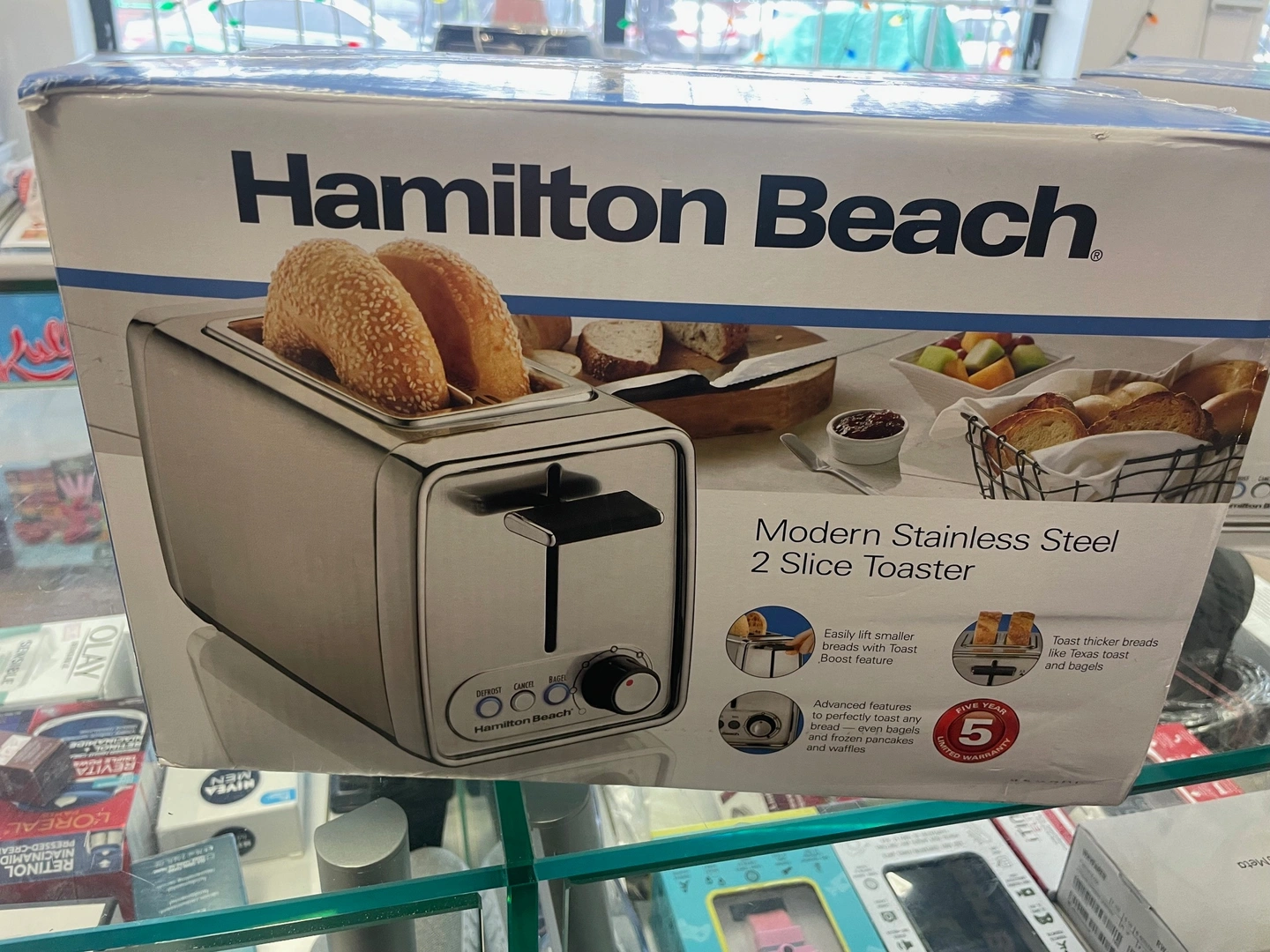 This Hamilton Beach 2-slice toaster offers up handy one-touch smart functions for reheat, defrost, bagel, and cancel. Unique built-in bagel technology toasts the cut side of the bagel while gently warming the rounded side for the perfect bagel, while dual control allows two different toasting selections at the same time.