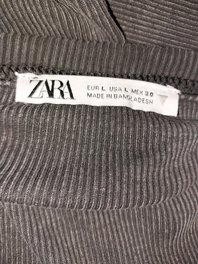 Selling a Zara ribbed t-shirt in size large. It's in great condition and ready for a new home!