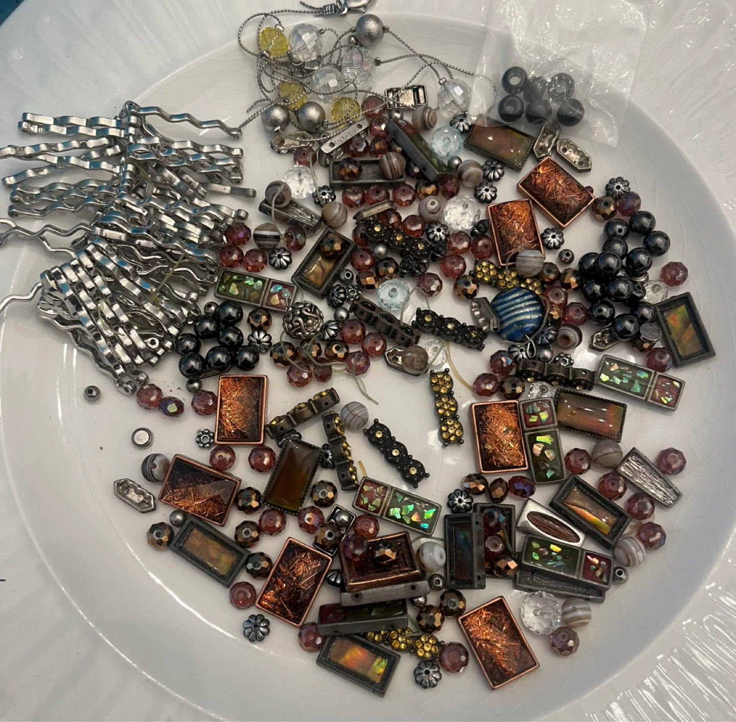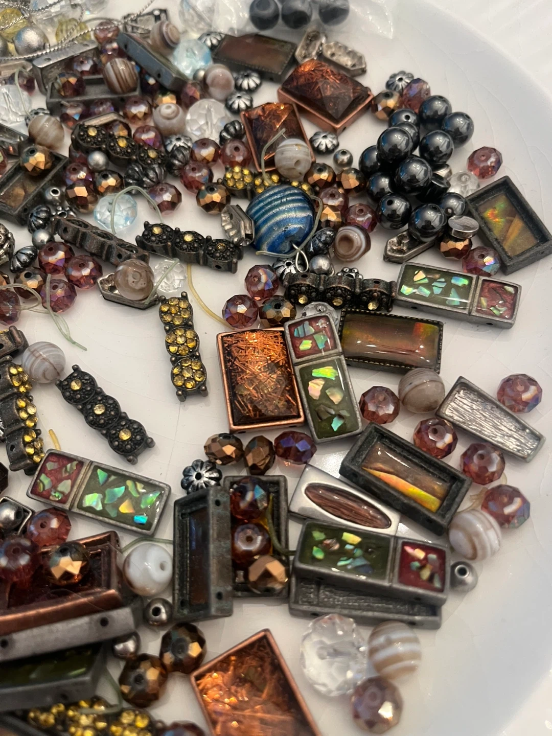Bag of broken jewellery- ready for a creative person to make something beautiful! Great for crafters. Assorted pieces that can be repurposed + 1 bracelet that need to be restrung.
