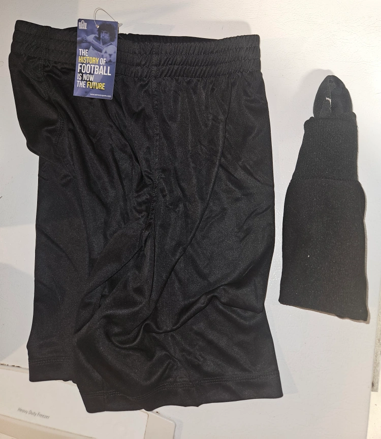 These are a pair of brand NEW black Admiral shorts in size small and a NEW pair of long Soccer shorts. Youth size small. Never been worn.