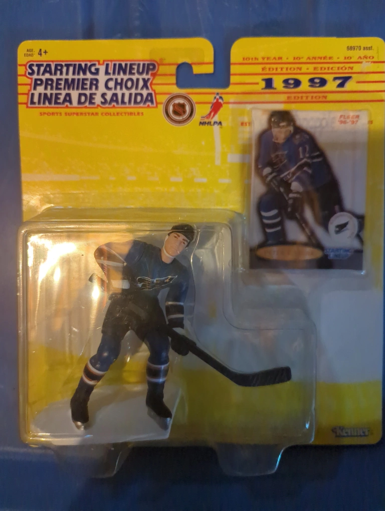 Selling a 1997 Starting Lineup hockey figure, still in its original packaging! It's part of the Sports Superstar Collectibles line and is suitable for ages 4 and up. A great find for any hockey fan or collector!