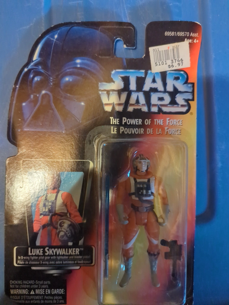 Selling a Star Wars Luke Skywalker action figure from The Power of the Force collection! It's in its original packaging and comes with a lightsaber and blaster pistol. Suitable for ages 4+