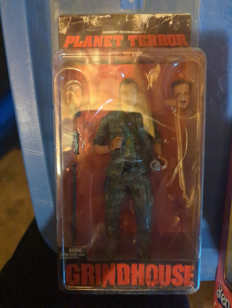 Selling a Planet Terror action figure from Grindhouse! It's still in its original packaging, making it a great collector's item. The figure is based on Robert Rodriguez's Planet Terror. A cool addition to any movie memorabilia collection!