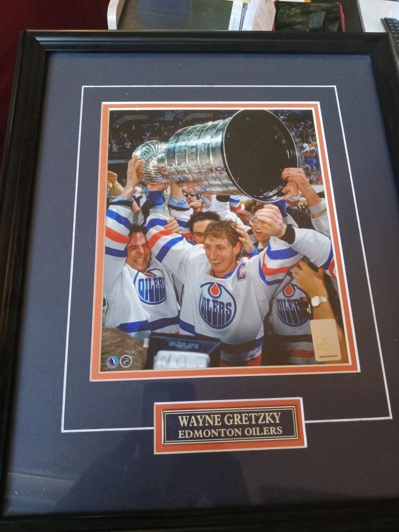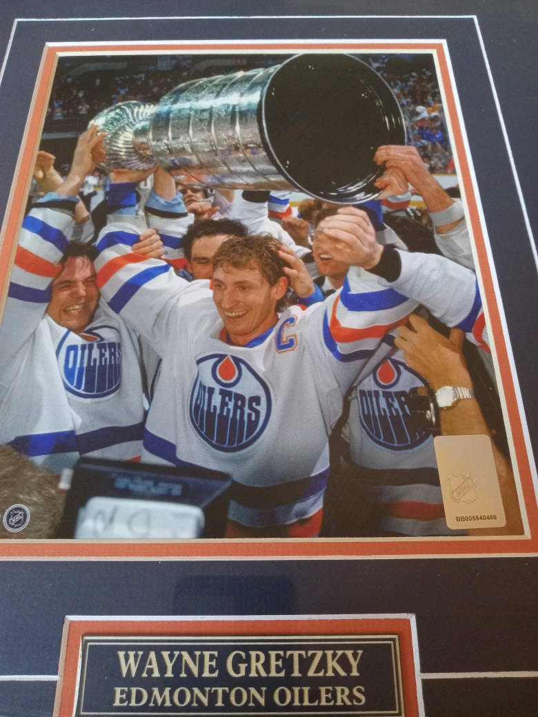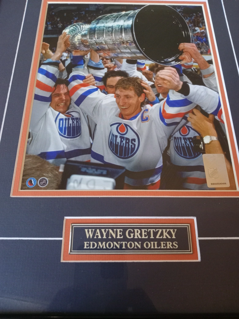 405Selling two framed pictures of Wayne Gretzky with the Edmonton Oilers. One features a painting and the other is a photograph of the team holding the Stanley Cup. Both are framed and ready to hang in your home or office!