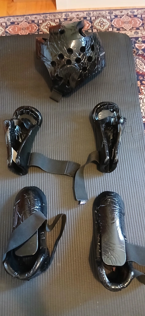 Selling a set of black sparring equipment. Comes with a head peice, 2 hand pieces and 2 foot pieces with wraps.
