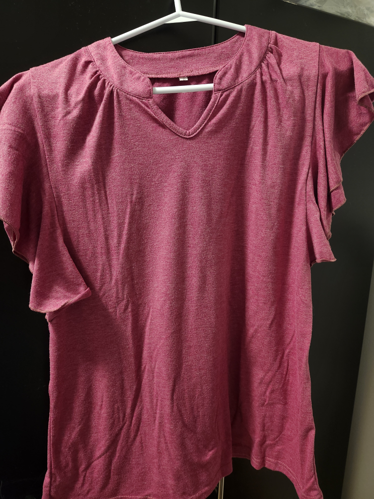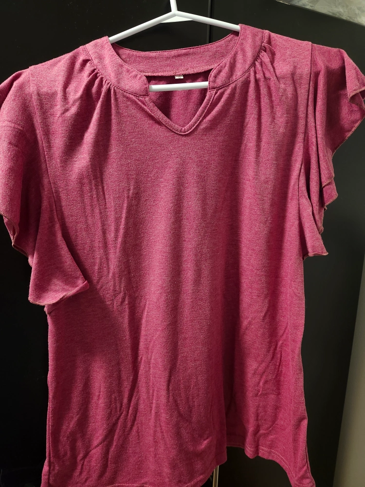 A lovely Pink top with flutter sleeves. It's a size small and in great condition! The material is soft and comfortable, perfect for everyday wear. Wore it once but doesn't suit me