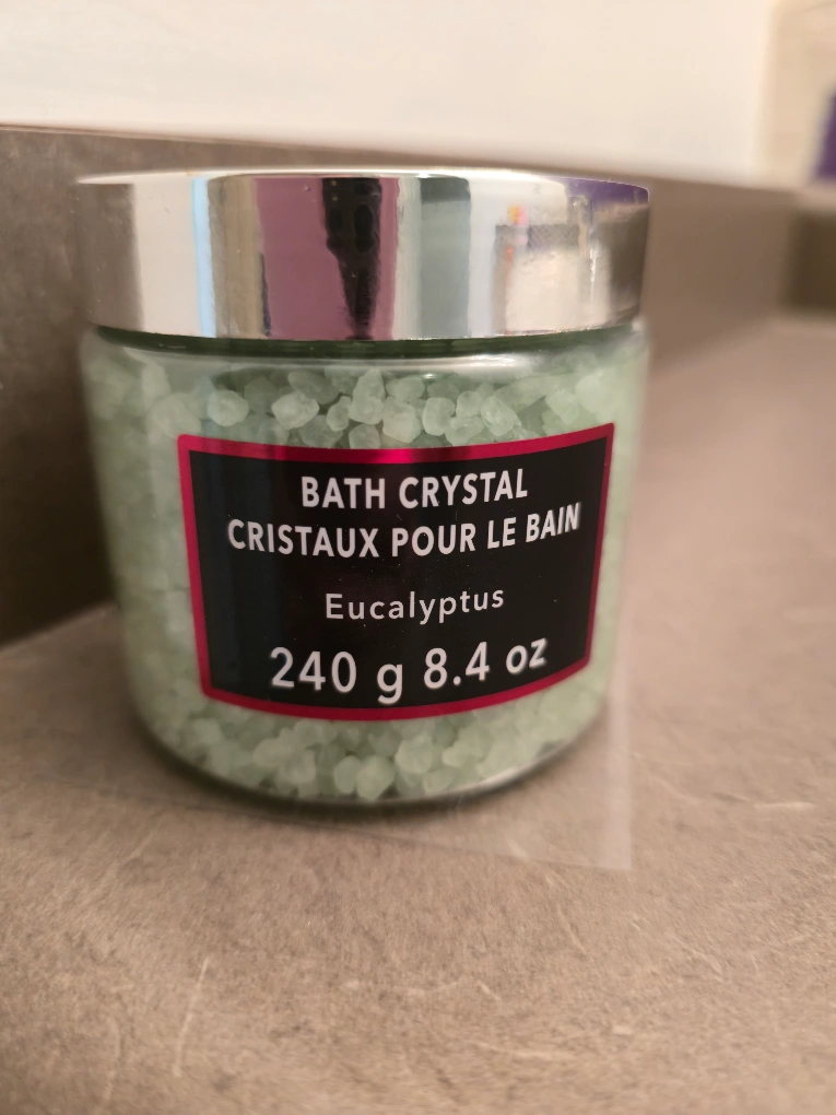 Selling a jar of Eucalyptus bath crystals. It contains 240g / 8.4 oz of bath crystals, perfect for a relaxing bath sealed, brand new