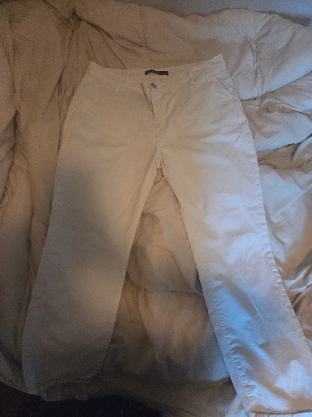 Selling a pair of white trousers. They are in good condition and ready for a new home. Perfect for casual wear or dressing up!