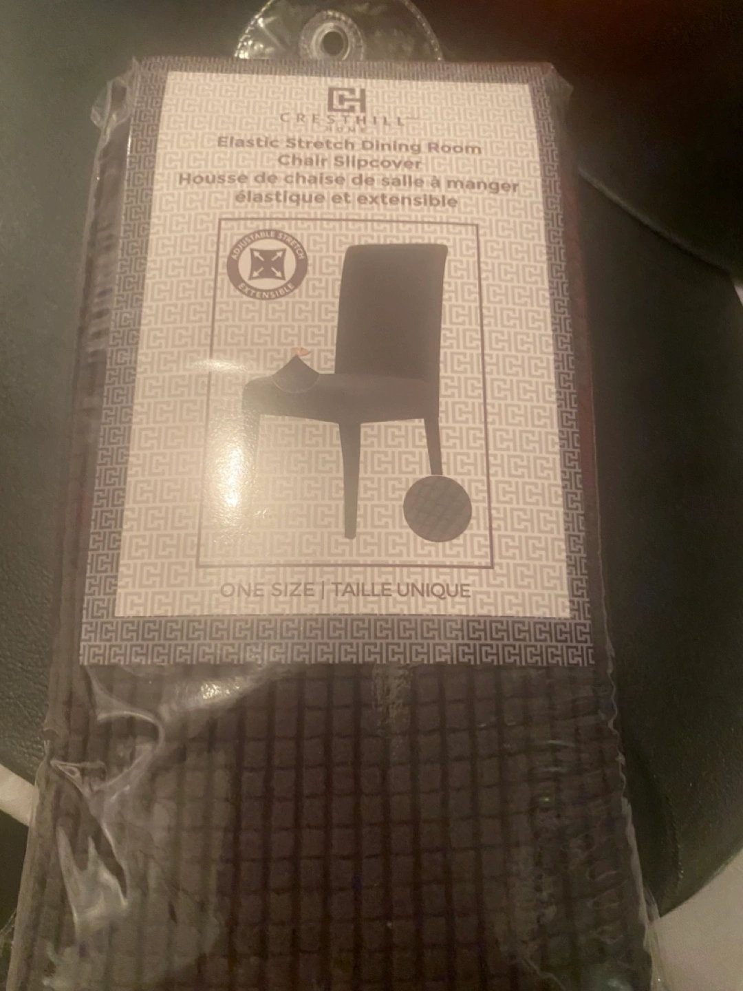 Selling a Cresthill elastic stretch dining room chair slipcover! It's designed to fit most standard dining chairs with its adaptable and extensible fabric. Grey in colour. 3 have been used once. They don’t fit on my new chairs!! $20 for 4