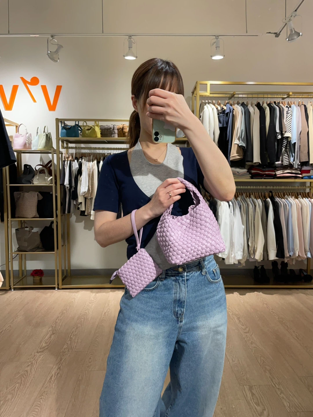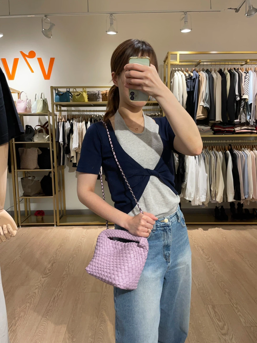 Lilac Woven Handbag with Coin Purse