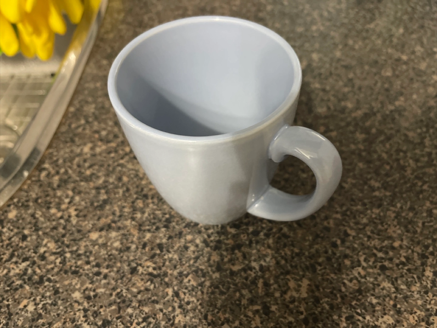 A simple, light blue ceramic mug is up for grabs! It's in great condition and perfect for your morning coffee or tea. It has a nice, rounded handle for a comfortable grip. A great addition to any kitchen!