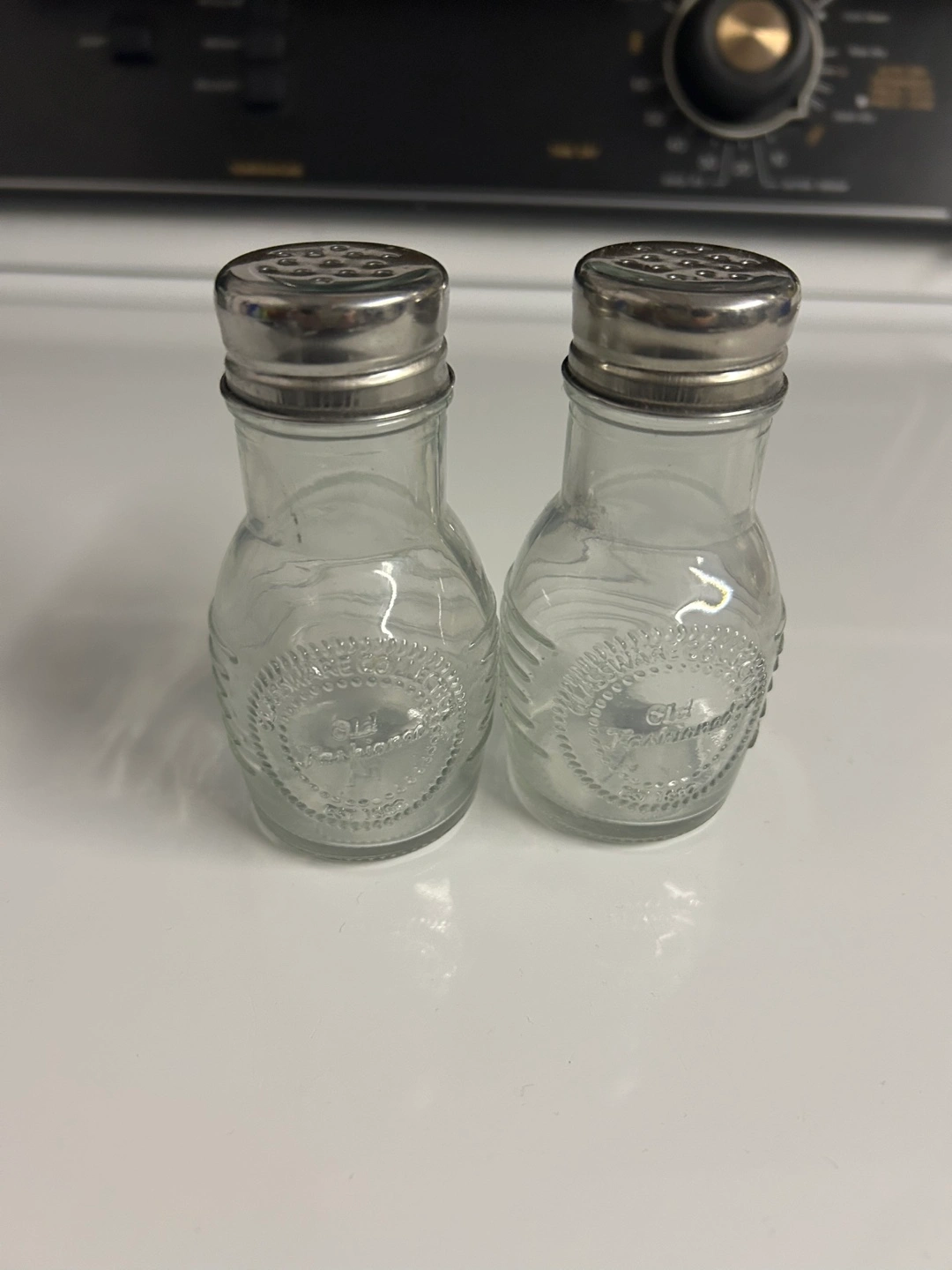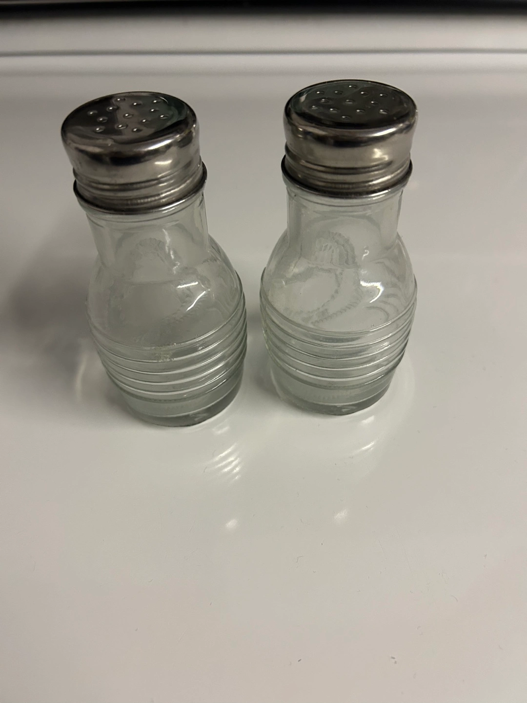 237Here's a set of vintage Glasbake salt and pepper shakers! They have a classic design and would look great in any kitchen. They are in good condition with some signs of wear.