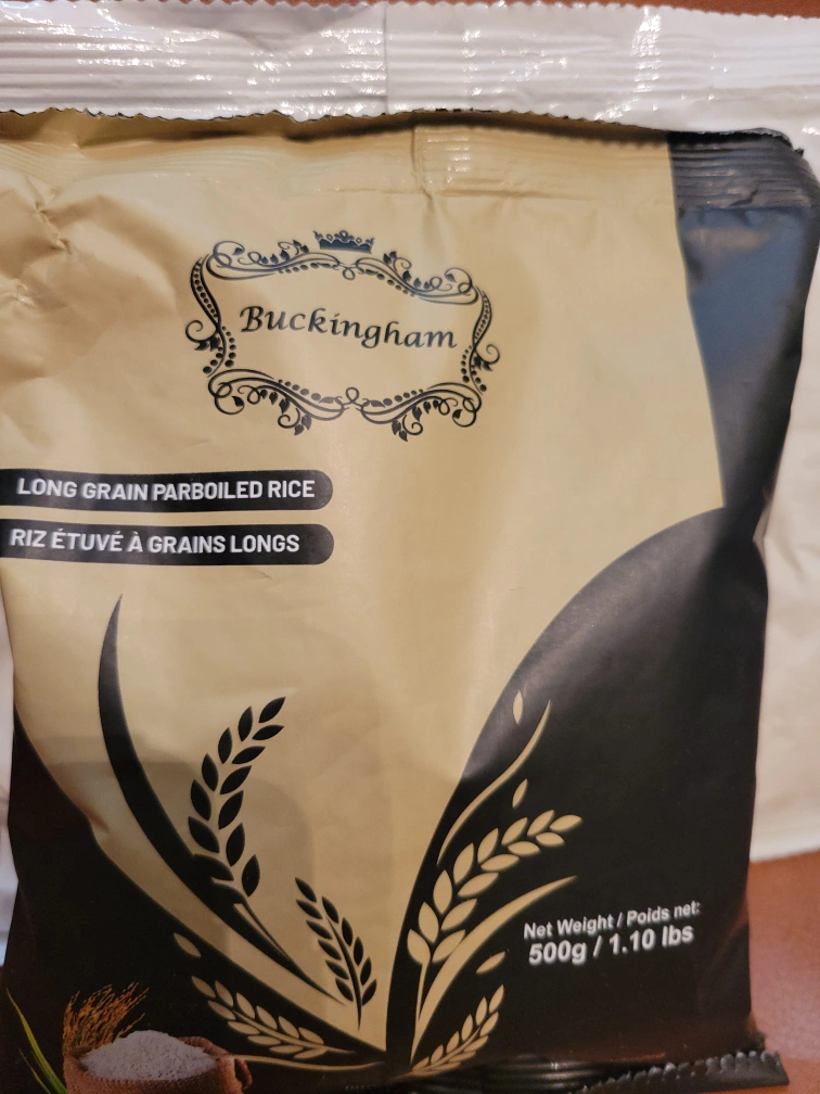 Sharing new bag of Buckingham Long Grain Parboiled Rice. Net weight is 500g / 1.10 lbs