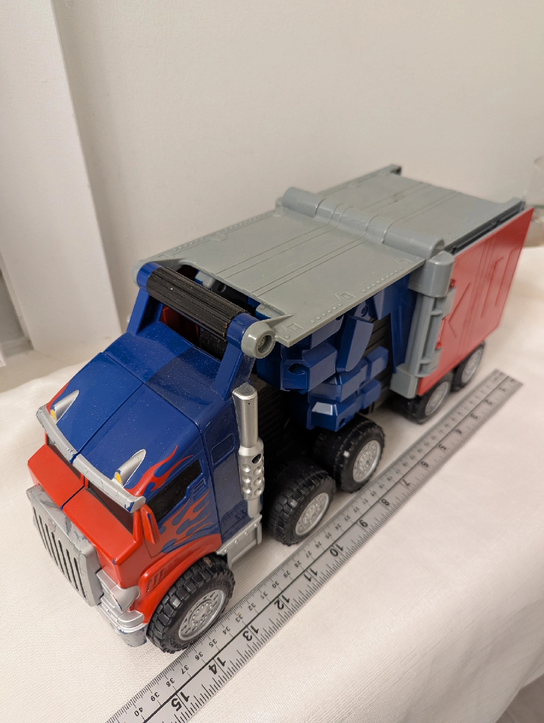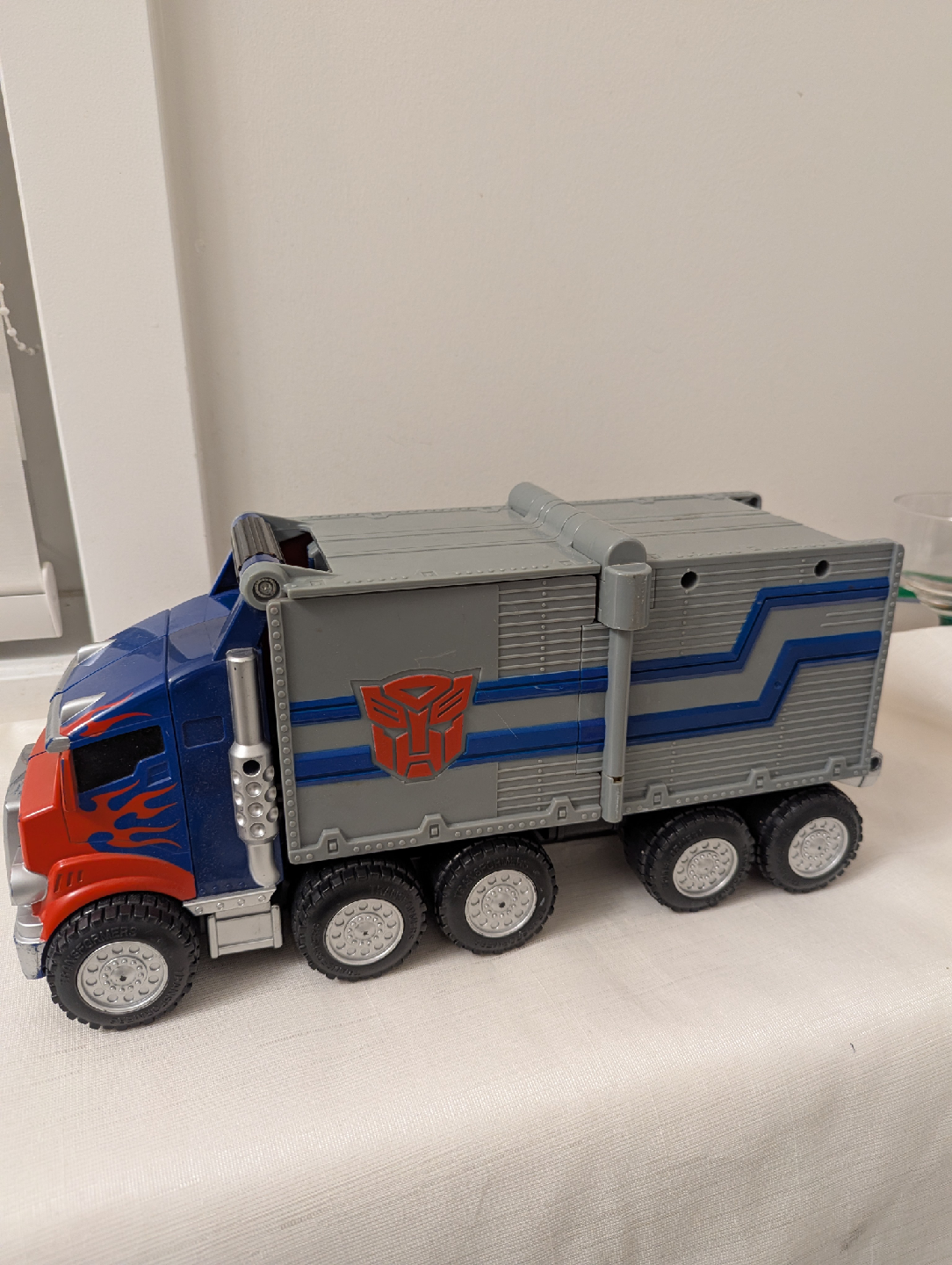 Selling a Transformers Optimus Prime truck that turns into a Nerf dart shooter. Perfect for any Transformers fan!