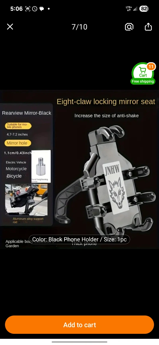 Selling a brand new black phone holder perfect for motorcycles or bicycles! It features an eight-claw locking mirror seat and is designed to increase anti-shake. The size is 1 pc, and it's an aluminum alloy support rod. pick Scarborough or oshawa