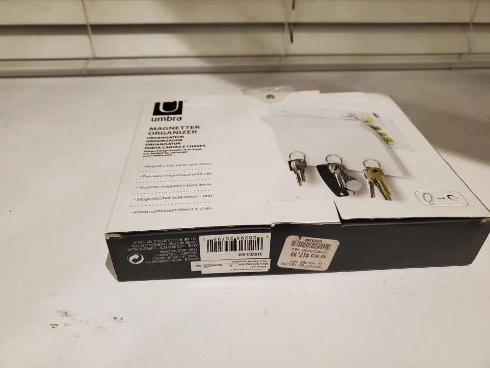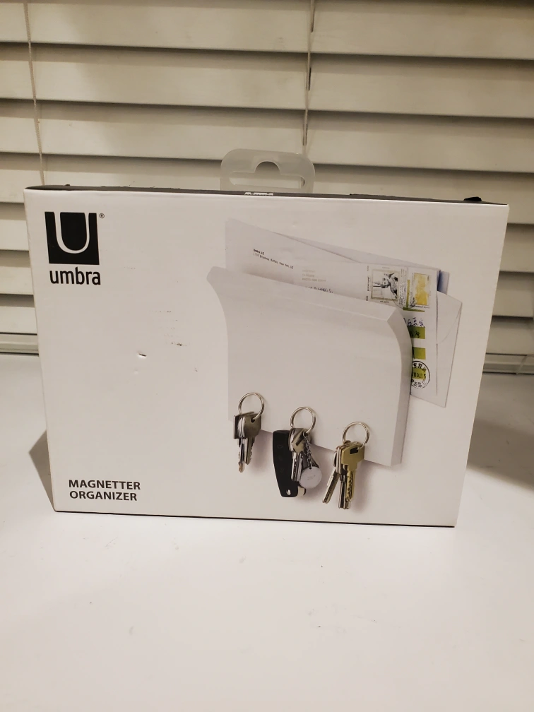 I'm selling a brand new Umbra Magnetter Organizer! It's a magnetic key panel and letter holder, perfect for keeping your entryway tidy. The organizer comes in its original box and can hold up to 3 sets of keys. Great for organizing mail and keys in one spot!
