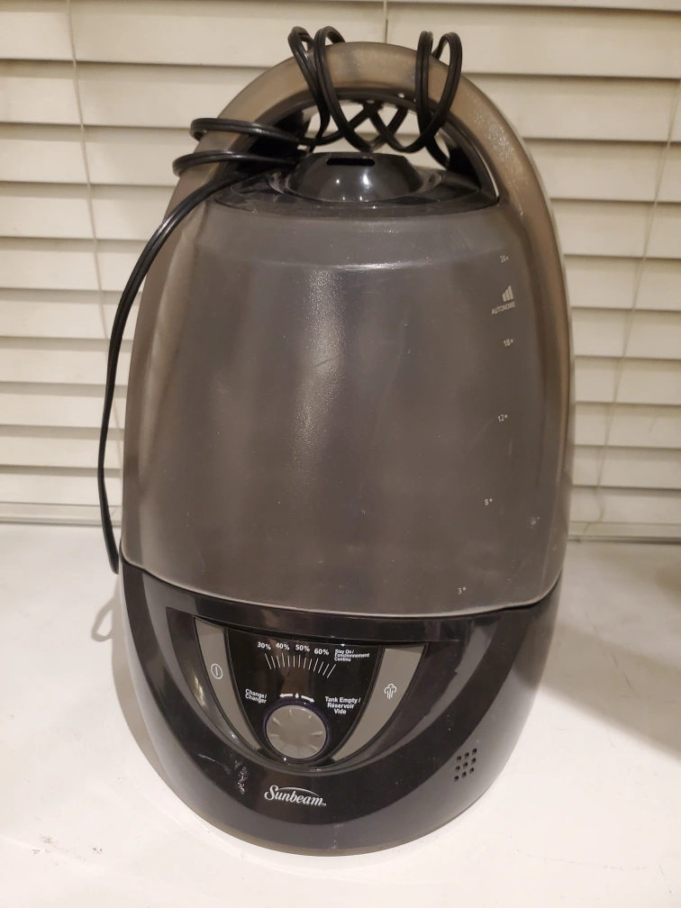I'm selling a Sunbeam humidifier in great condition. It features adjustable humidity control and a tank empty indicator for your convenience. It's perfect for maintaining a comfortable environment in your home, especially during the dry winter months