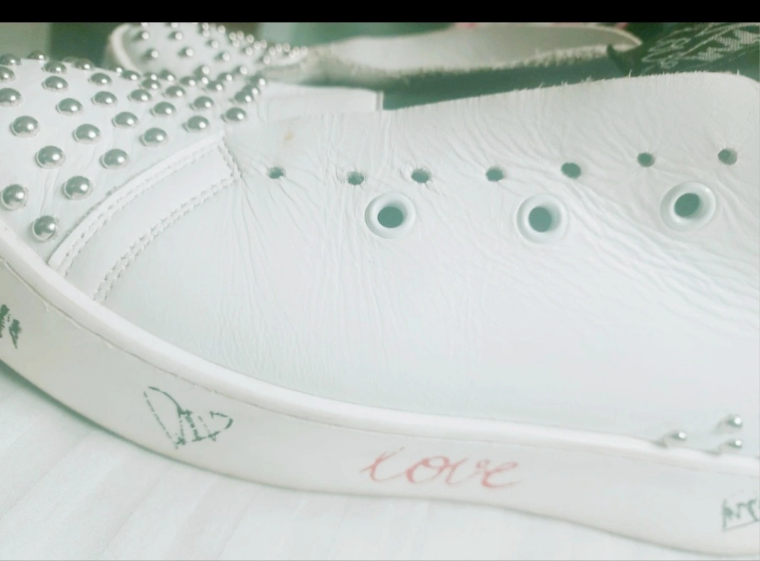 These Alberto Venturini slip-on shoes are a stylish addition to any wardrobe! The white colour and studded detailing make them a unique statement piece. They feature a 'love' detail on the side. Perfect for adding a touch of edgy flair to your look