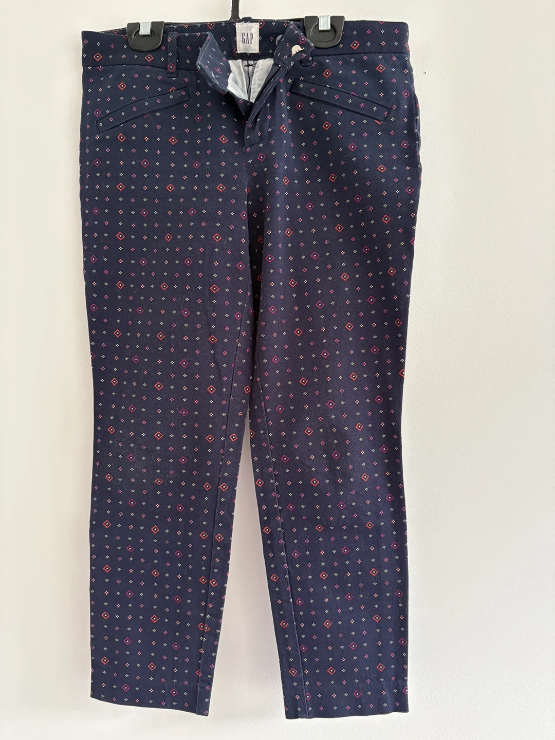 These GAP pants are a stylish addition to any wardrobe! They feature a unique navy blue pattern. Perfect for casual or semi-formal occasions, these pants are sure to make a statement. From no smoking/ no pet home.
