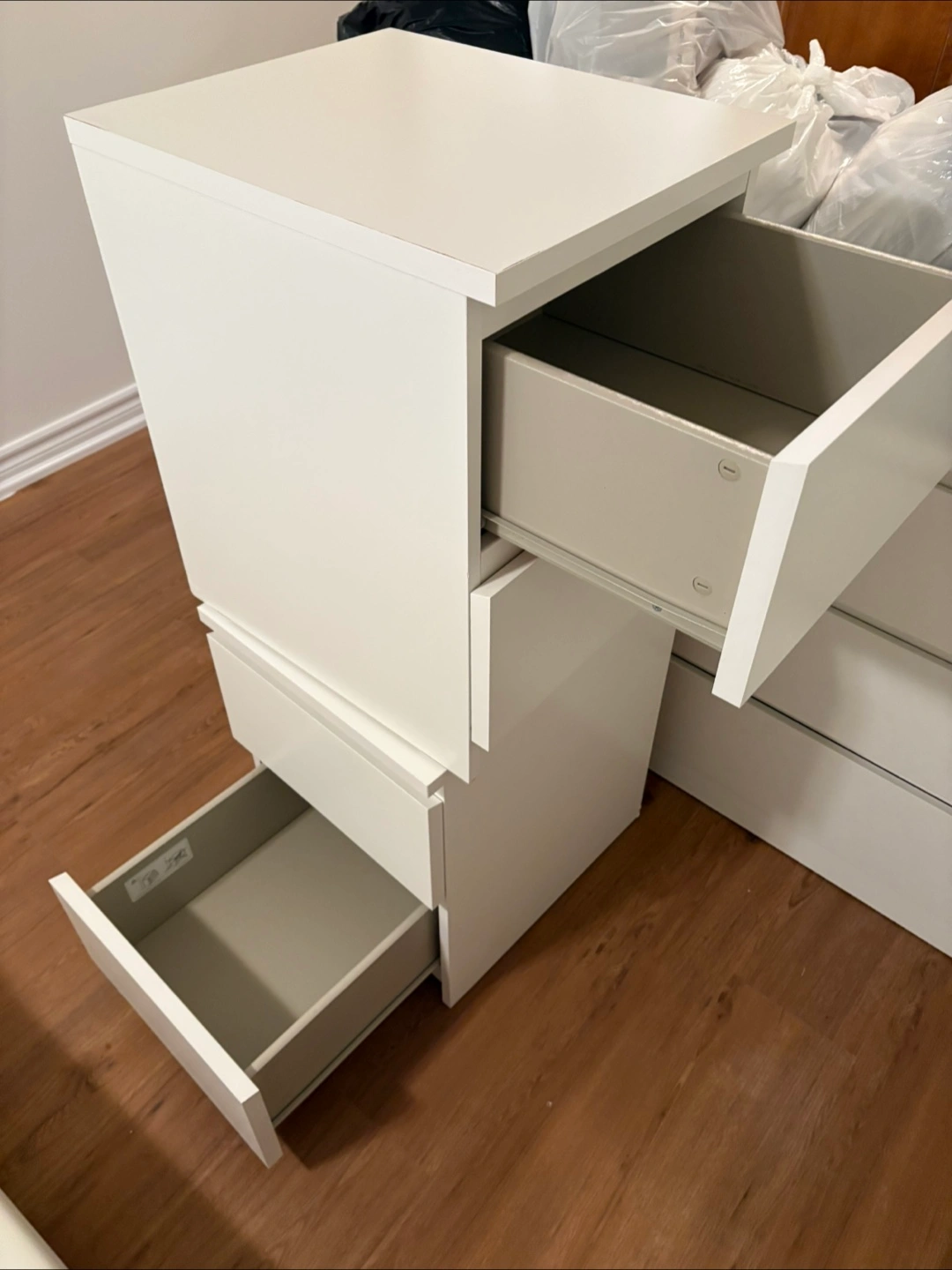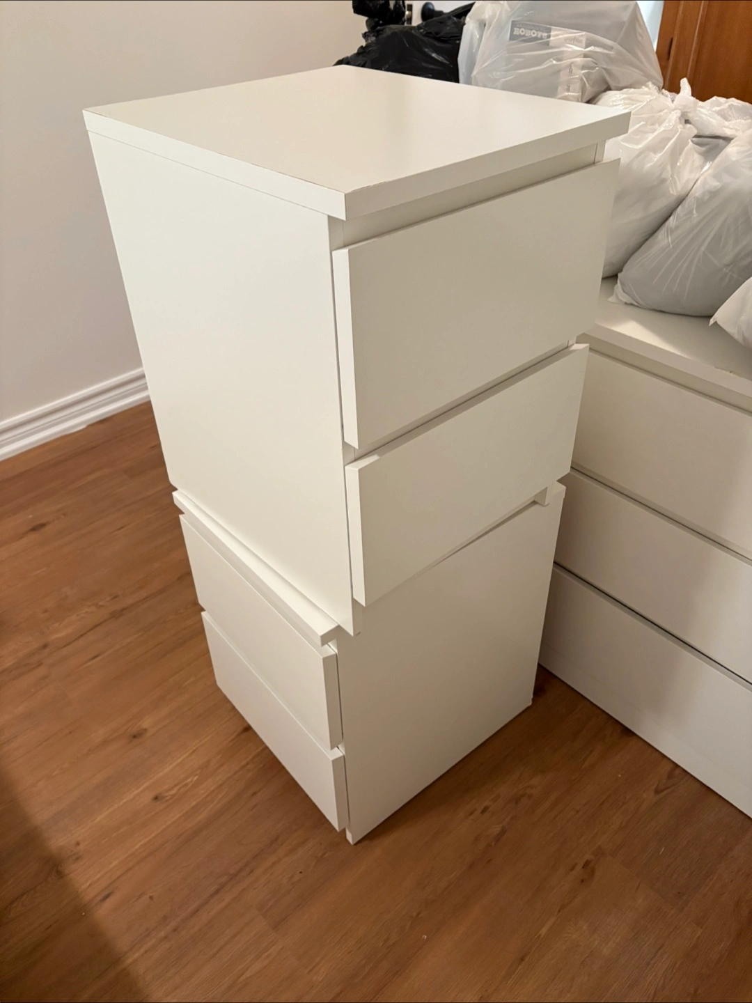 Selling two white dressers with two drawers. They’re in excellent condition and perfect for adding extra storage space to your bedroom or any other room in your home. Easy to move and look great!