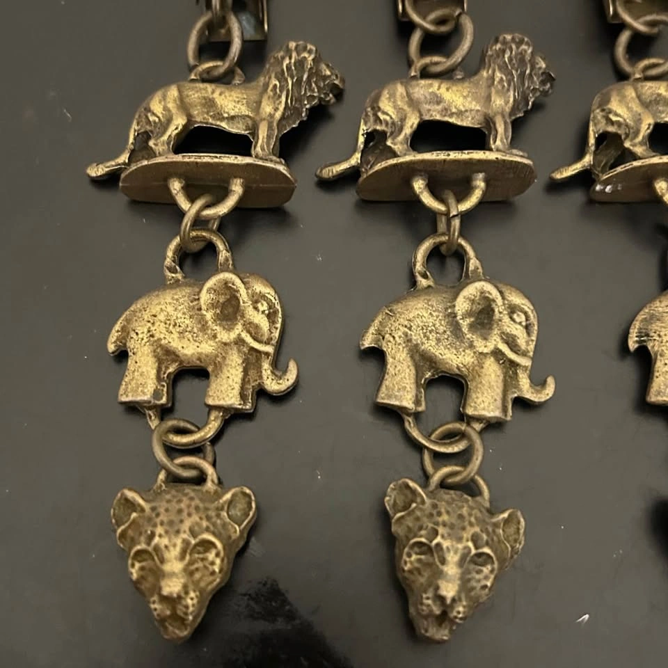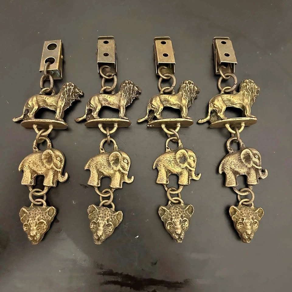 Vintage set of 4 brass curtain clips featuring safari animals: lion, elephant, and leopard head. Each piece has detailed design and antique patina, perfect for African safari or colonial-style decor. Can be used for curtains, drapes, or as a collectible display. Material: Brass/metal with patina Theme: Safari animals – Lion, Elephant, Leopard Set includes: 4 clips Condition: Vintage, good, with natural age patina Pick up: Seton area, Calgary. See also my other lots. Open to your questions and suggestions. If necessary, I provide additional photos. These are not new things, so please look carefully at the photos and videos.