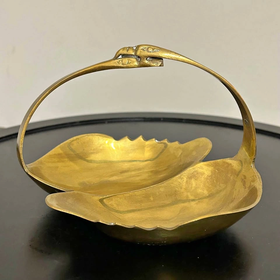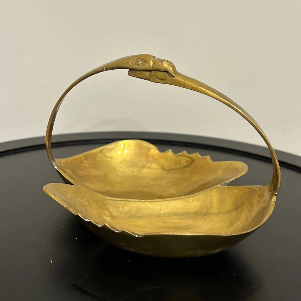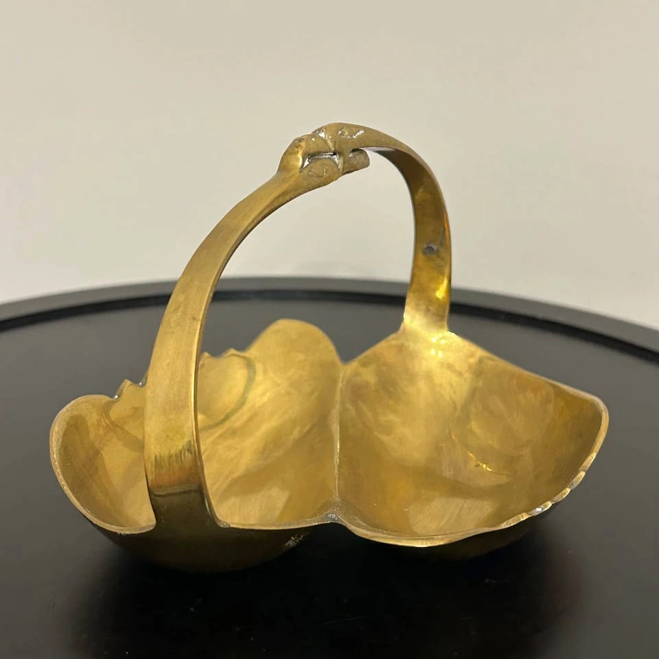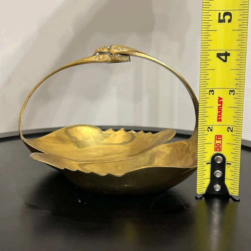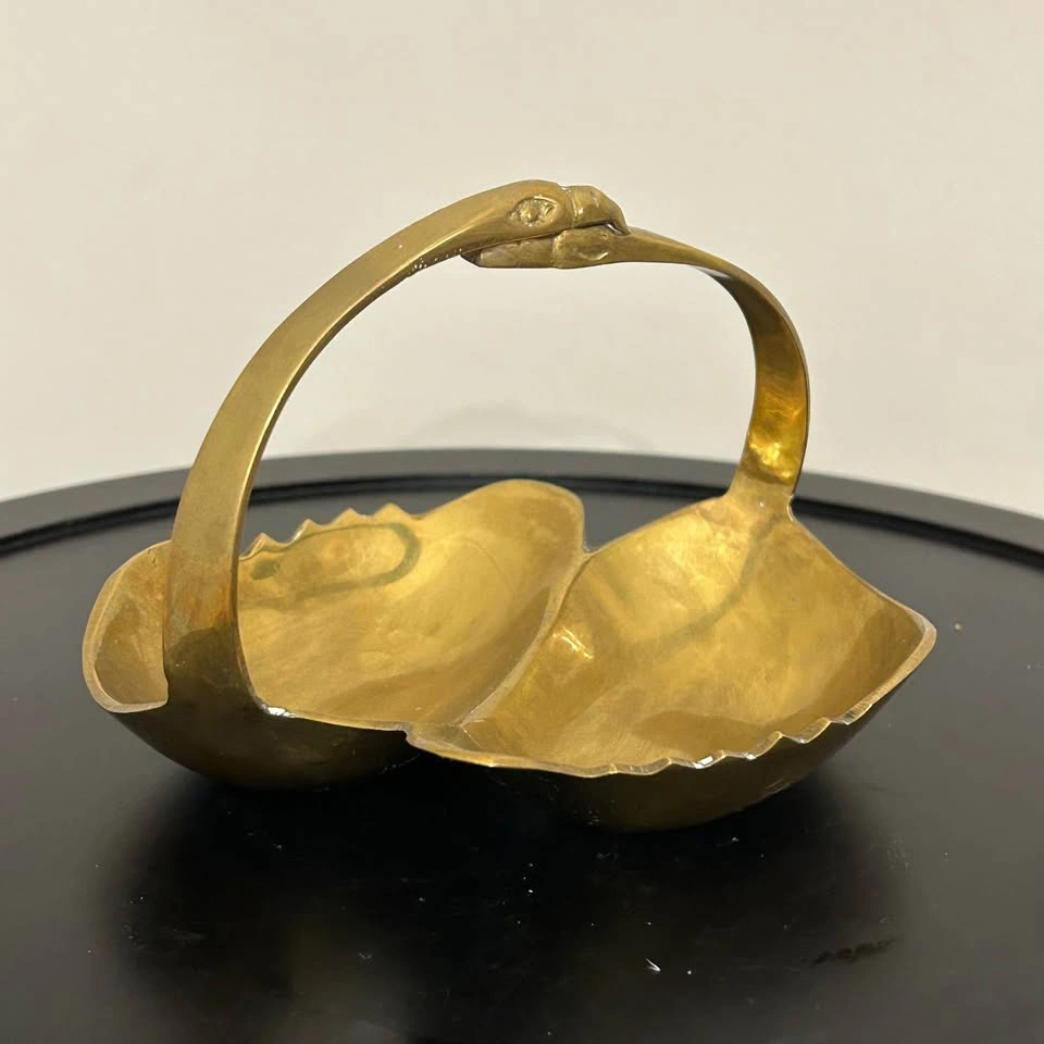 Beautiful vintage brass trinket dish designed with two swans forming a handle. The double shell-shaped compartments are perfect for holding rings, jewelry, coins, or other small treasures. A lovely decorative and functional piece with timeless charm. Pick up: Seton area, Calgary. See also my other lots. Open to your questions and suggestions. If necessary, I provide additional photos. These are not new things, so please look carefully at the photos and videos. Sizes are submitted on request and also using a tape measure in the photo.