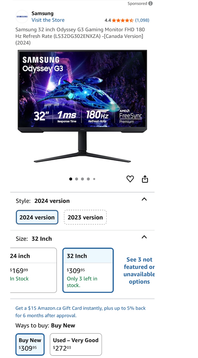 New Sealed Samsung 32" Odyssey G3 Gaming Monitor FHD 180Hz