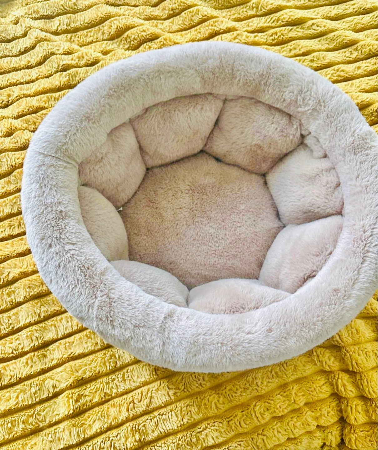 Selling a super comfy and plush pet bed! It's in great condition and ready for a new furry friend to enjoy. This bed is perfect for cats or small dogs who love to snuggle up in a soft and cozy space. It’s a neutral colour that will fit in with any home decor