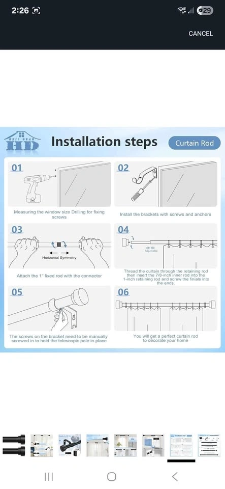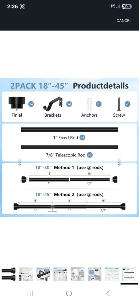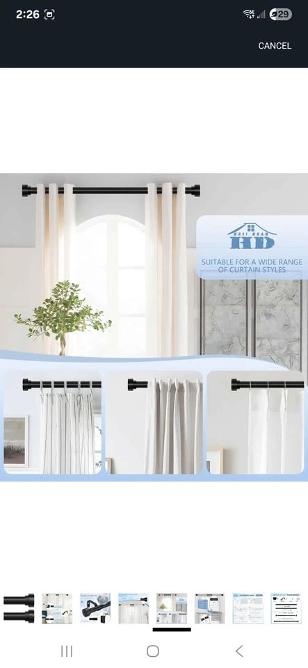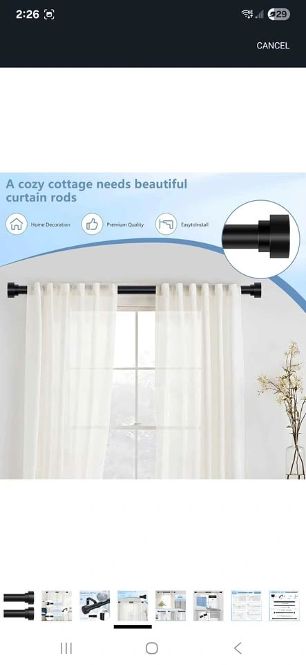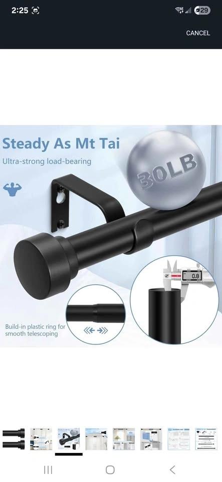 2 Pack Black Curtain Rods for Windows 28 to 48 Inch(2.3-4ft)