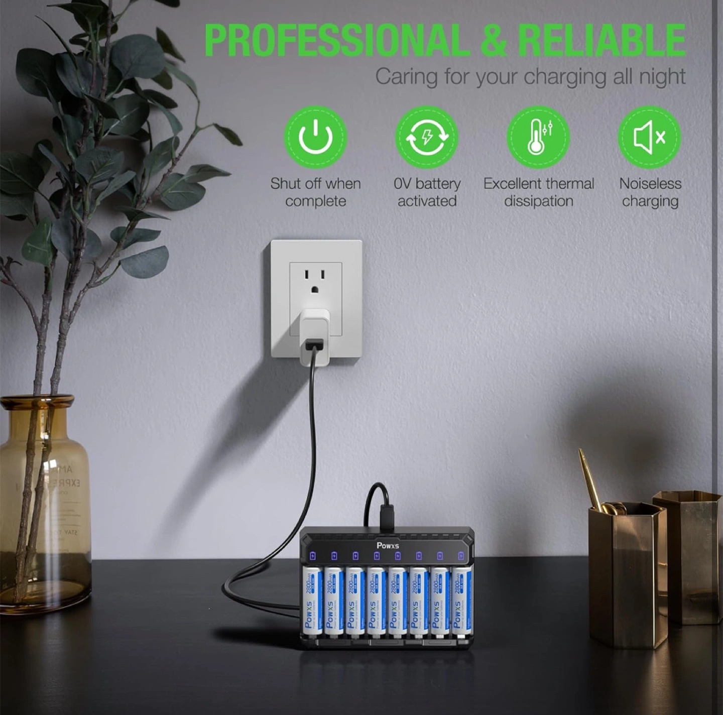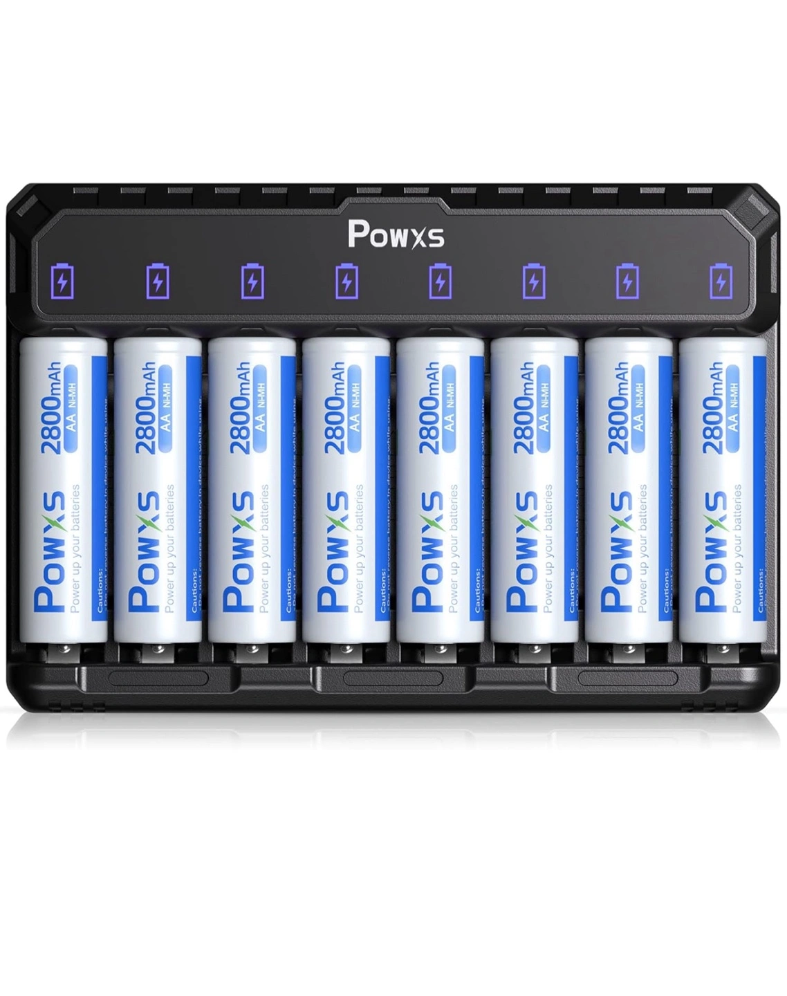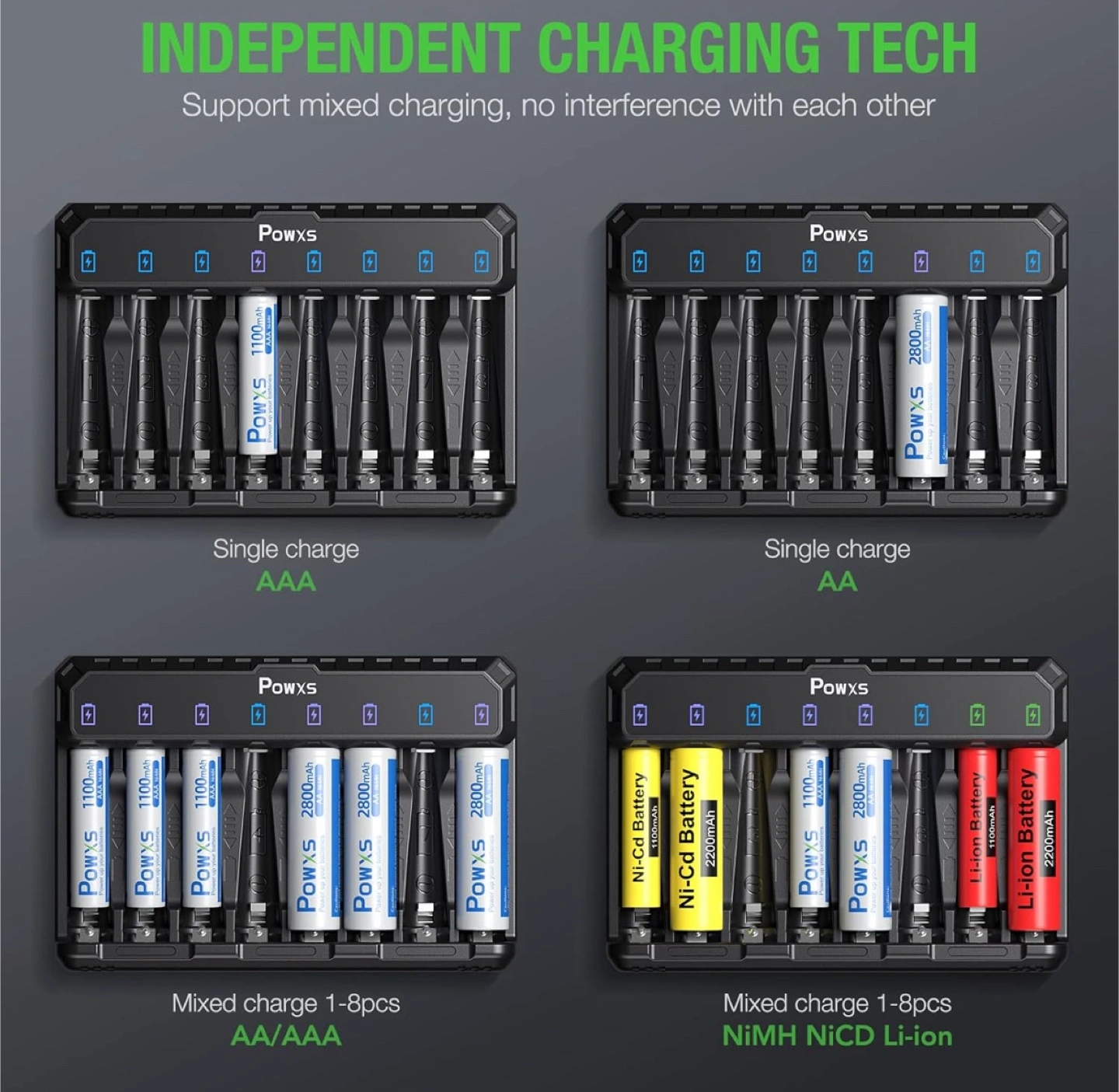 47Selling a Powxs intelligent LED charger, perfect for charging your batteries. It can individually charge 1-8pcs AA/AAA batteries. It's compatible with: - 1.2V Ni-MH Ni-CD batteries - 1.5V Li-ion Battery: AA AAA Features include: - Over-charge protection - Over-current protection - Over-heat protection - Short circuit protection