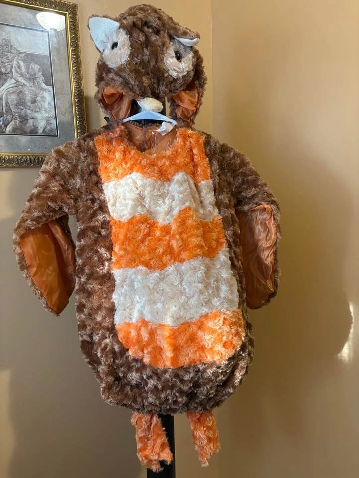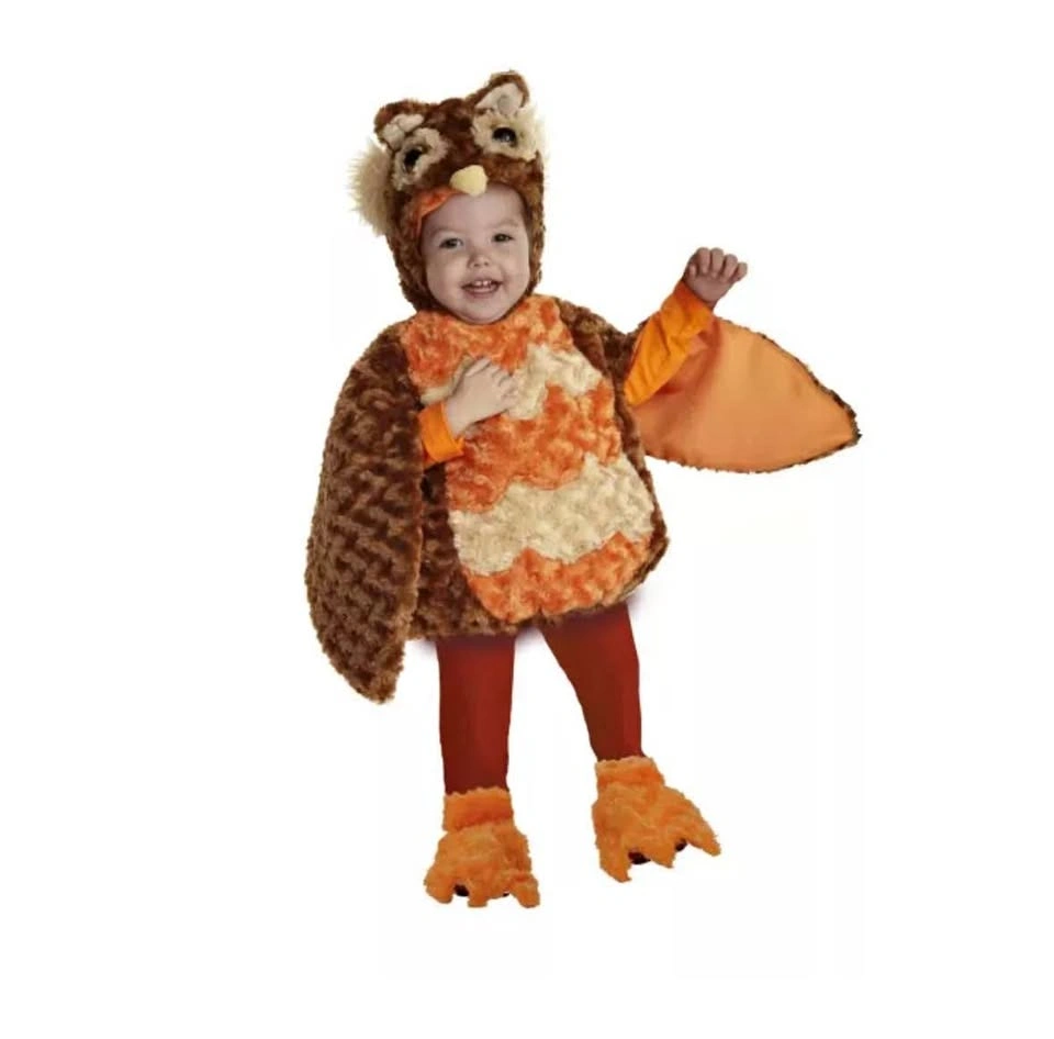 They'll all give a hoot when you dress your little one in this clever toddler's Owl costume. We know it's adorable so be sure to take pictures and let your imagination take flight on Halloween. The toddler Owl costume consists of a polyester tan, brown and orange character body and matching hood and shoe covers Cash only -local pick up Richmond hill
