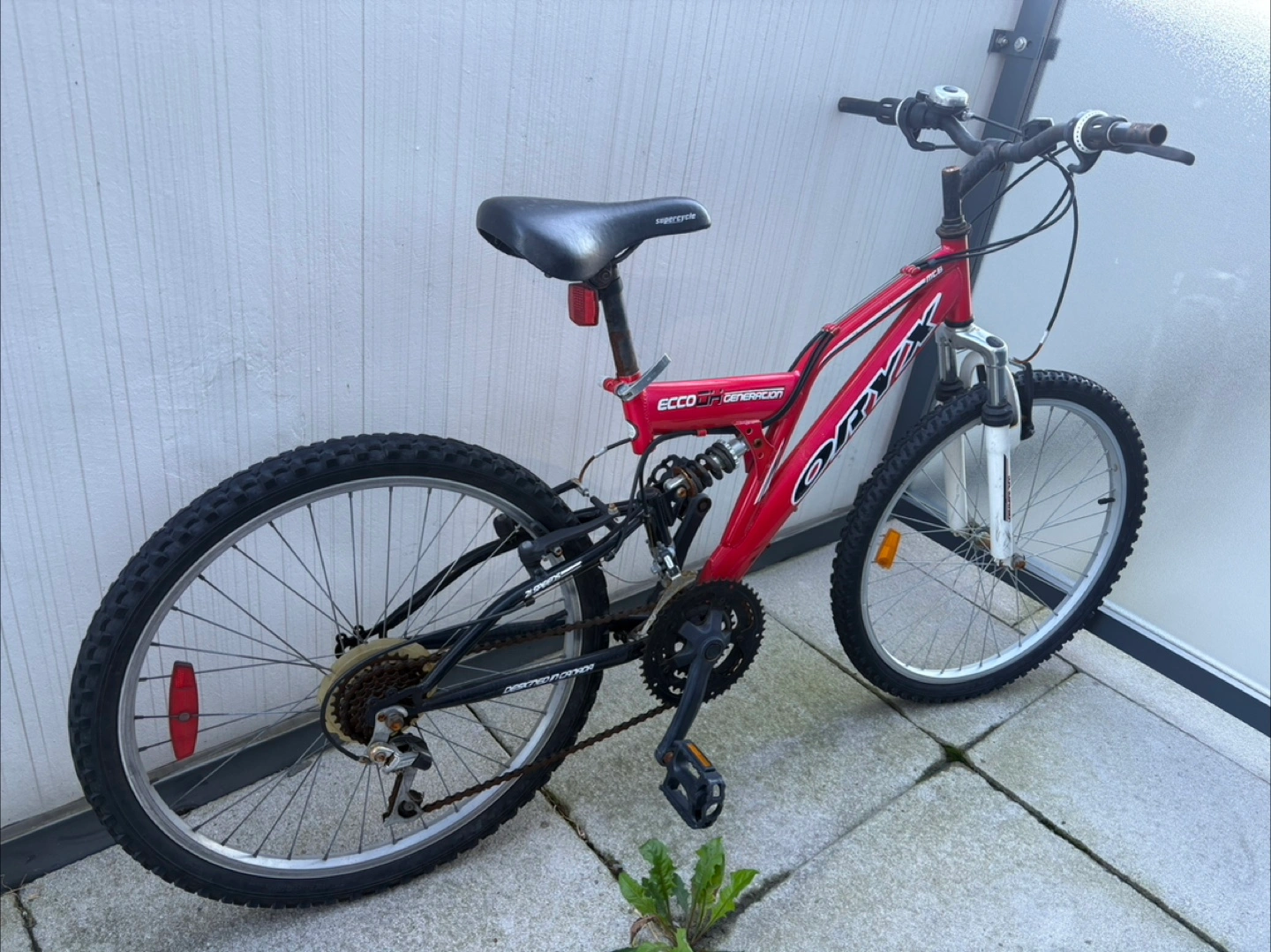 Giving away a Rocky Mountain ECC0 bike. It's red and black. The tires are in good condition. Perfect for someone looking for a sturdy bike!