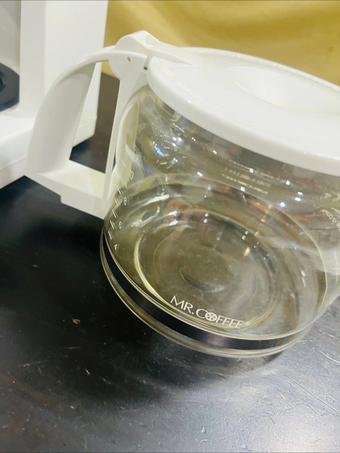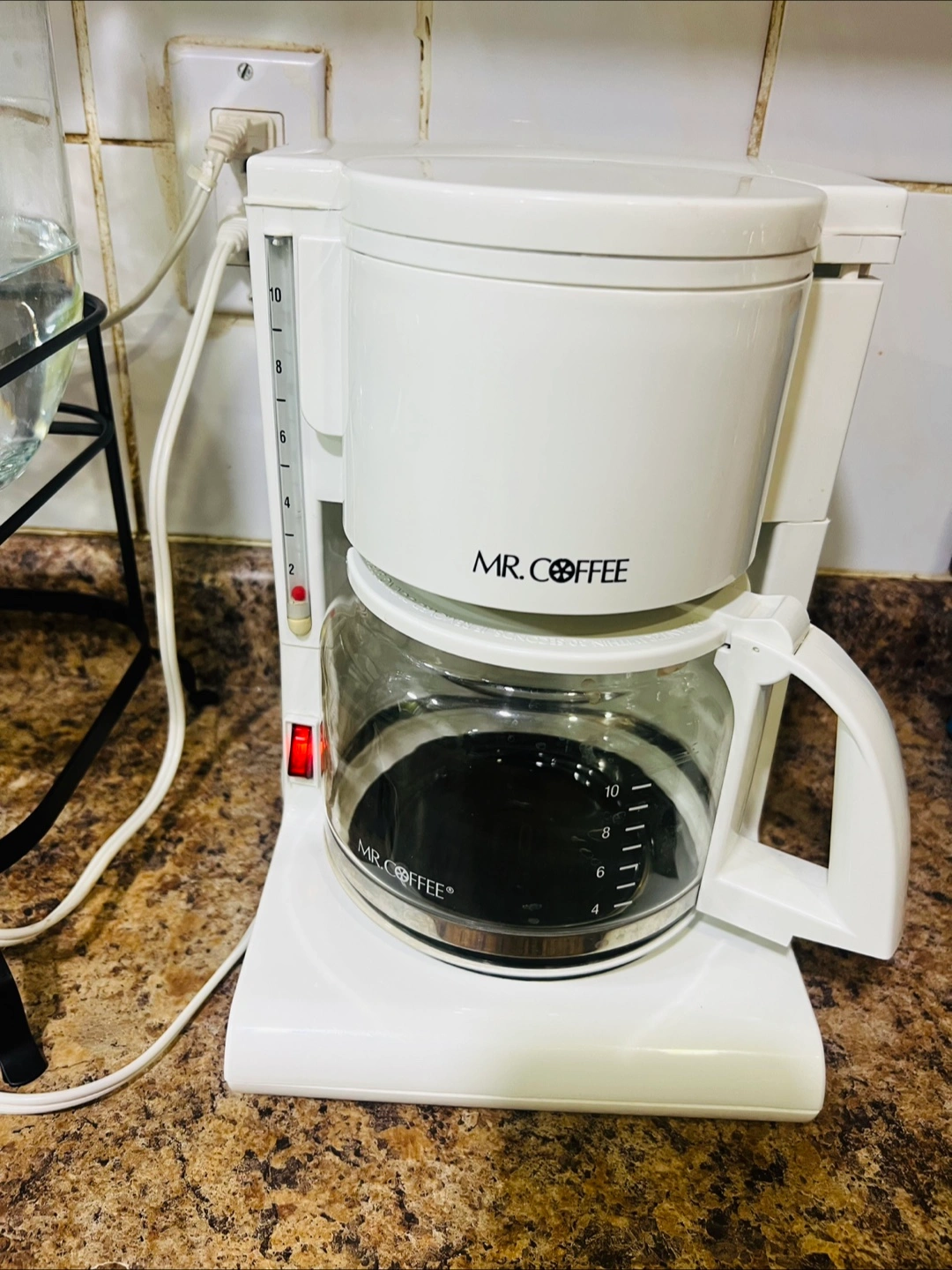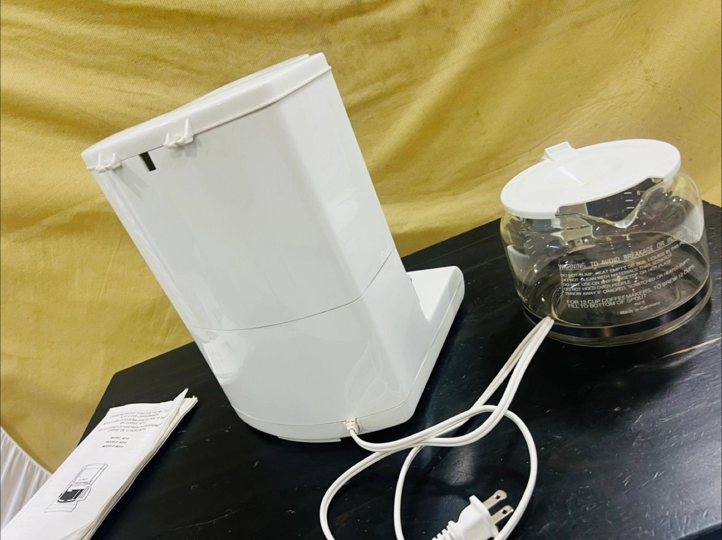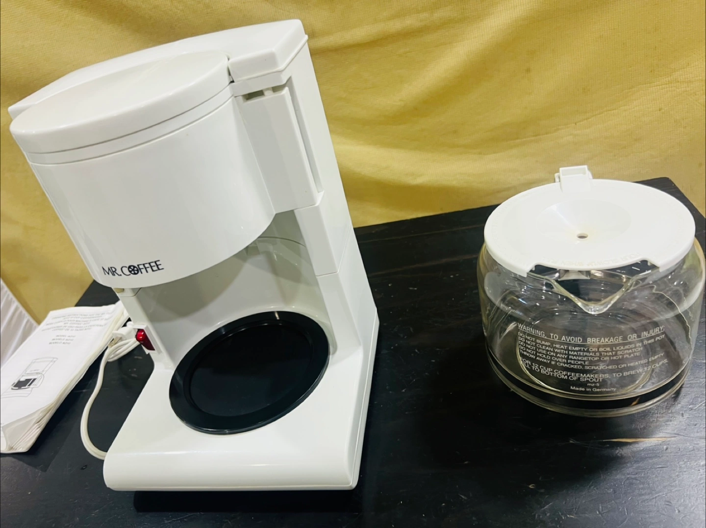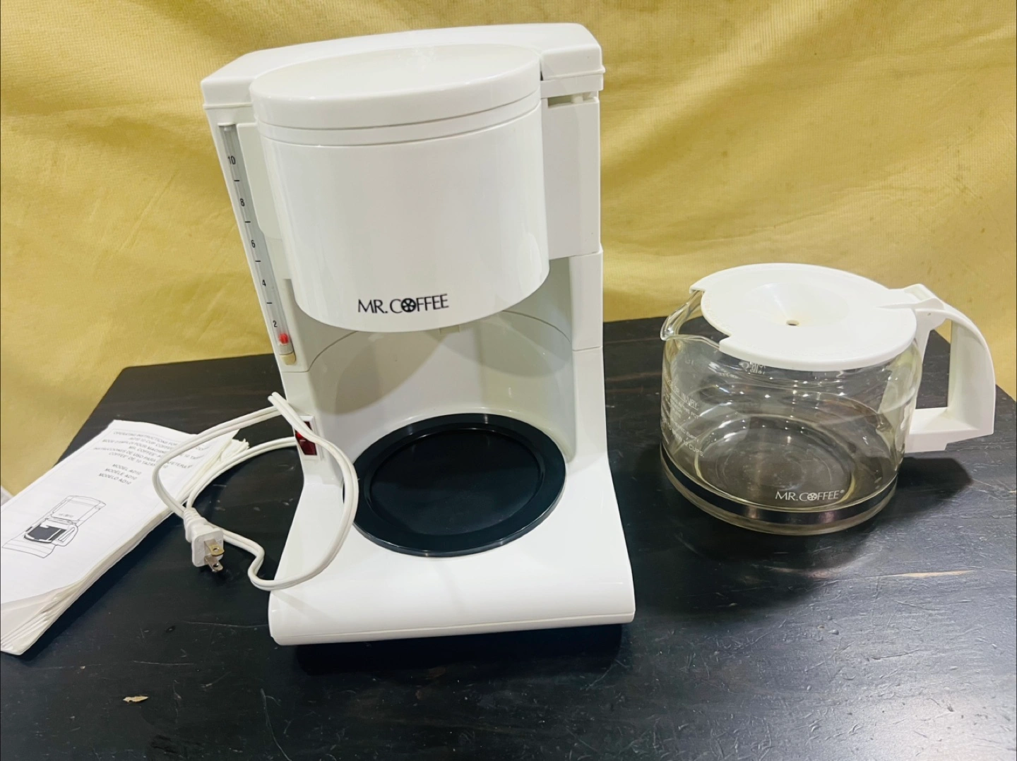 19Selling a Mr. Coffee International coffee maker in white. It's a 10-cup automatic drip model. The box is included, and it features Pause 'n Serve, a removable filter basket, and dual water windows.