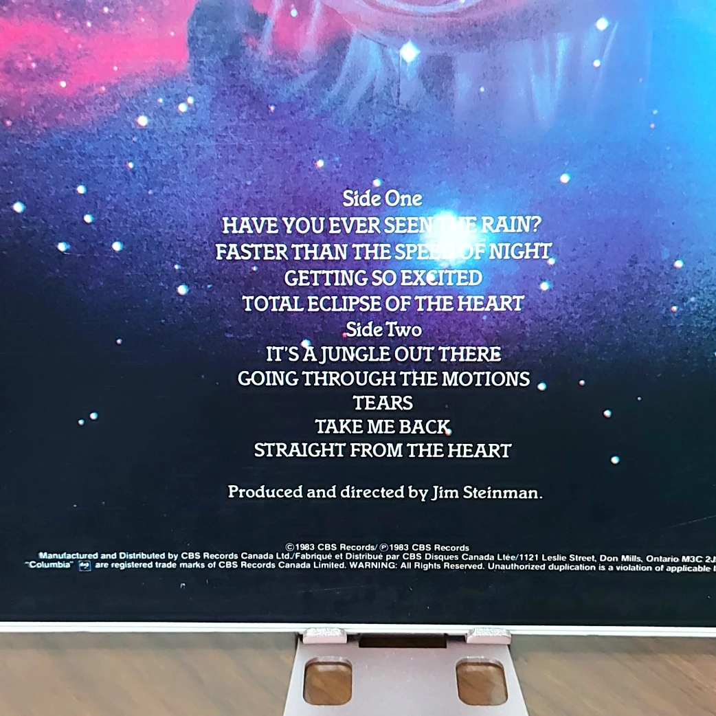 Bonnie Tyler faster than the speed of night 33 RPM vinyl record. I don't have a turn table, so I would like to see my vinyl collection go to someone who can use it, gift it, or resell it! From a pet free and smoke free home.