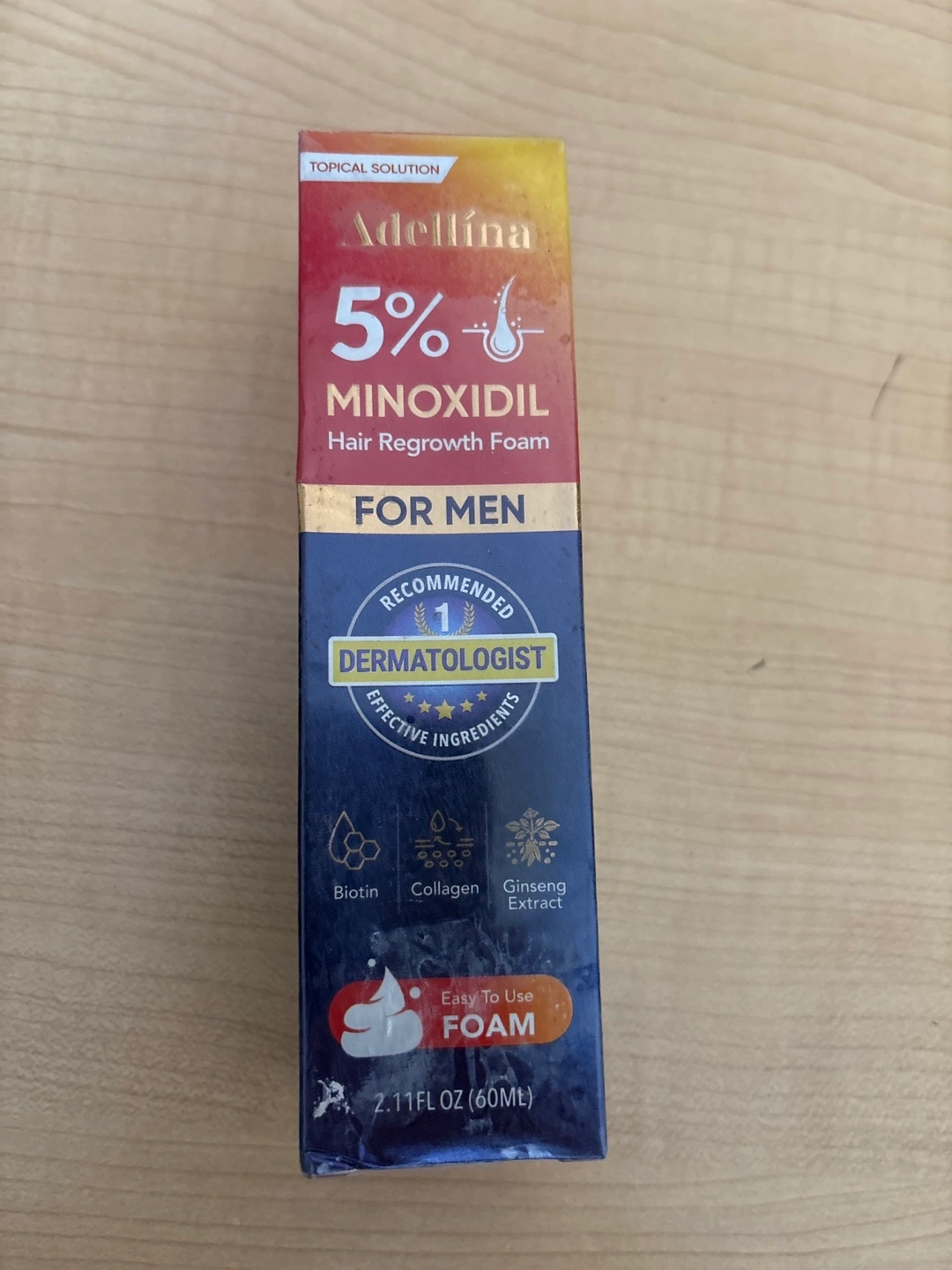 I'm selling 5% Minoxidil Hair Regrowth Foam. This topical solution contains effective ingredients like Biotin, Collagen, and Ginseng Extract. Easy to use foam, 2.11 fl oz (60ml).