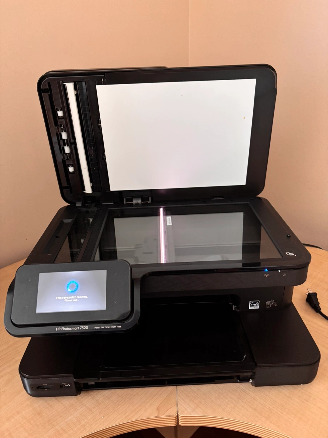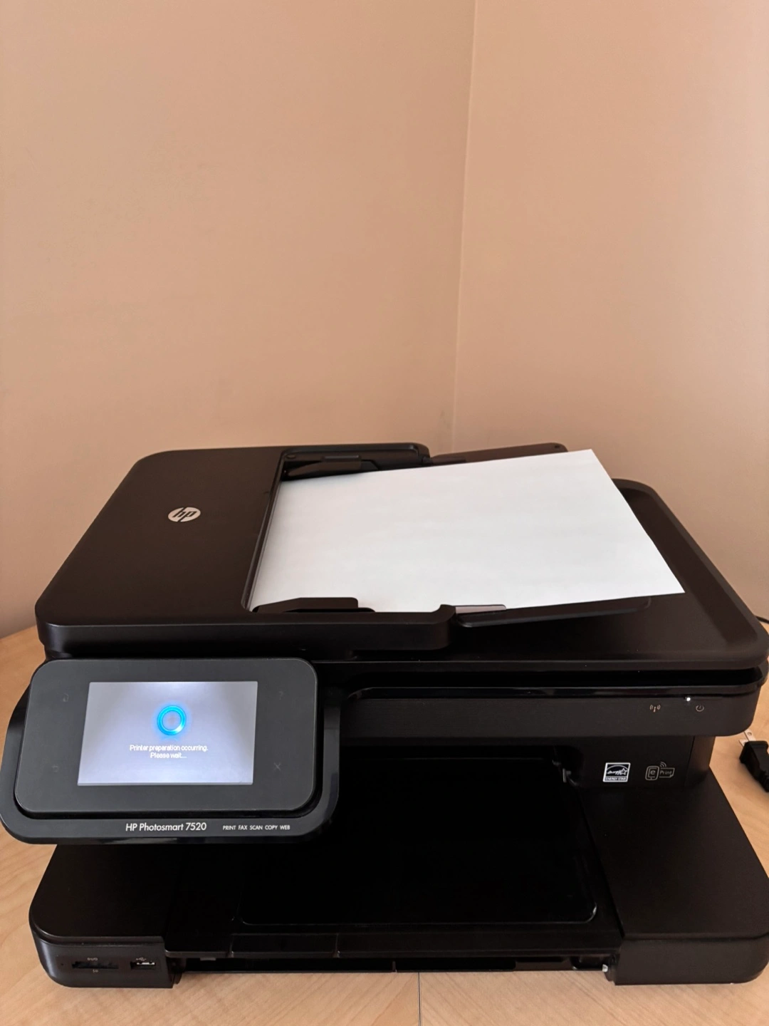 Selling an HP Photosmart 7520 printer. It comes with a set of ink cartridges, including black and photo cartridges. Perfect for home or small office use!