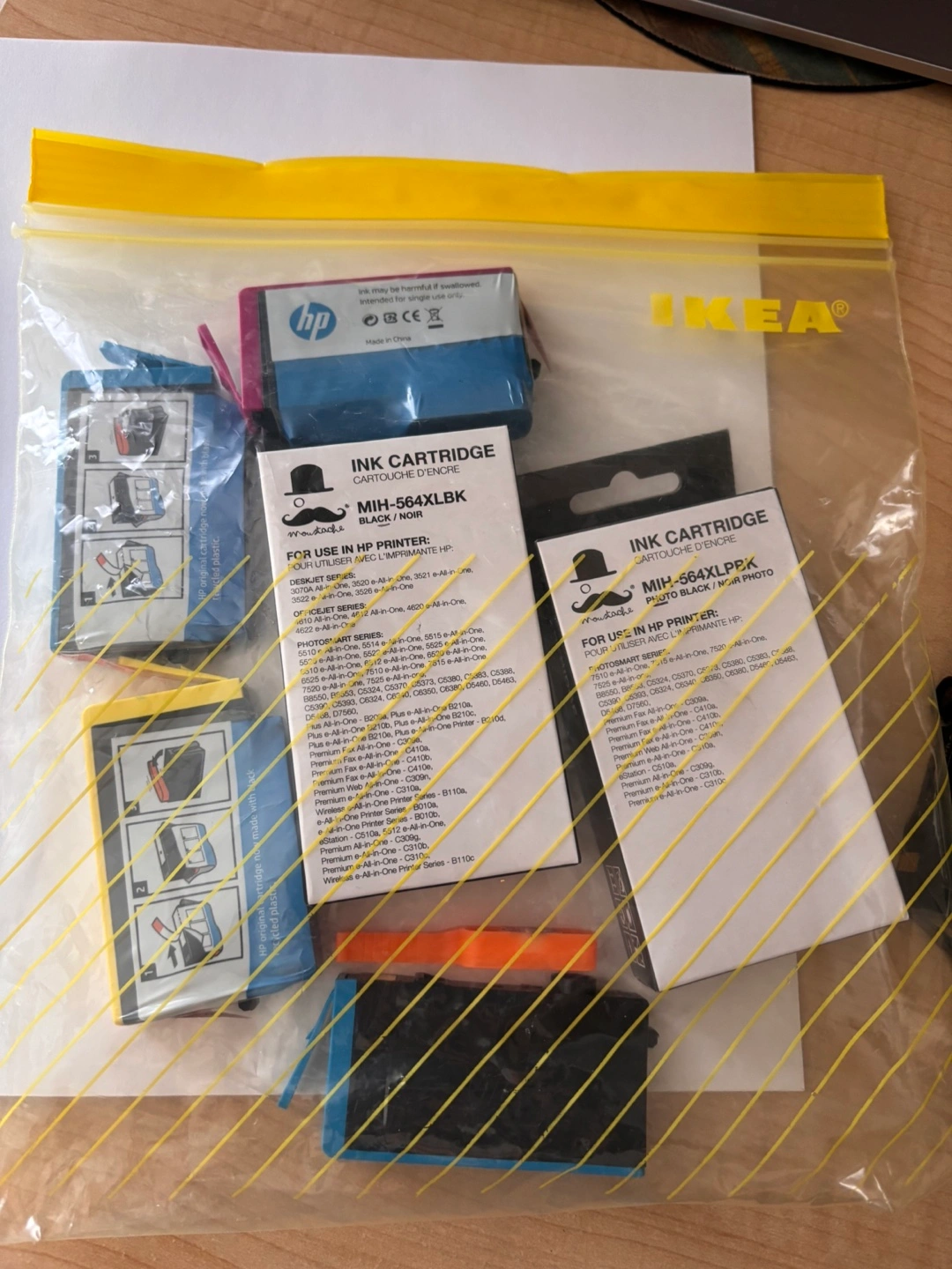 Hasn’t been used in over a year. Spare ink cartridges provided in bag.