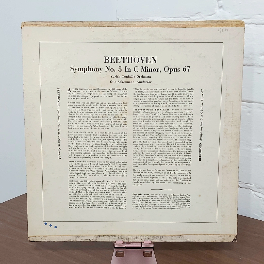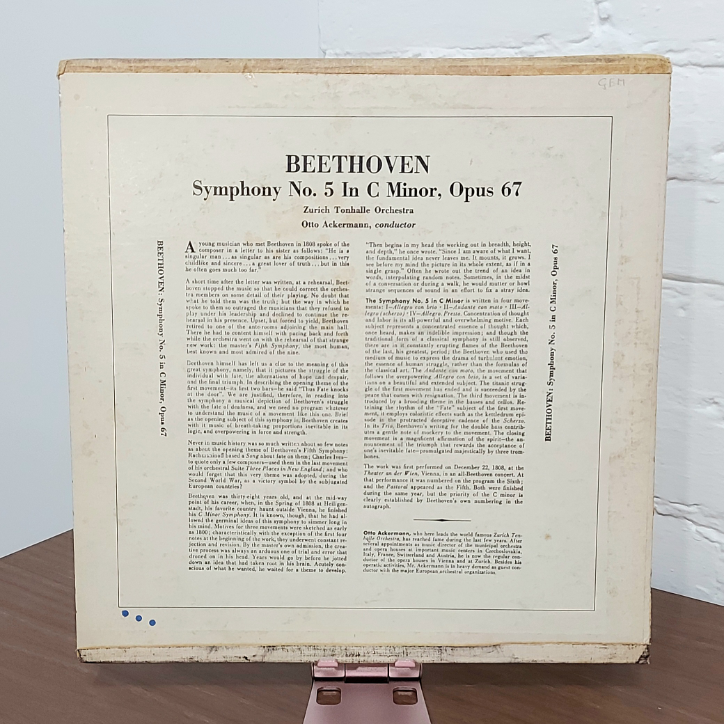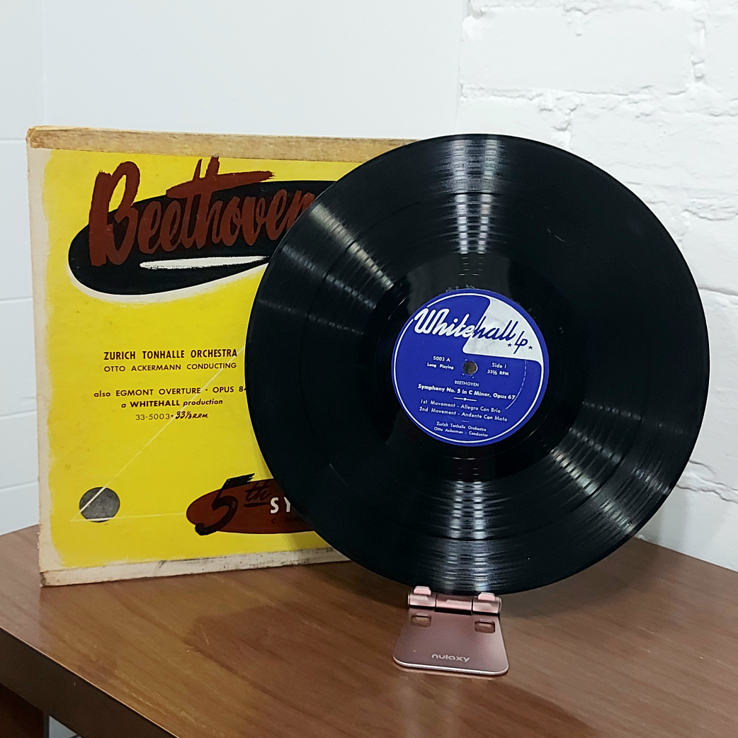 Beethoven 5th Symphony 33 RPM vinyl record. I don't have a turn table, so I would like to see my vinyl collection go to someone who can use it, gift it, or resell it! From a pet free and smoke free home.