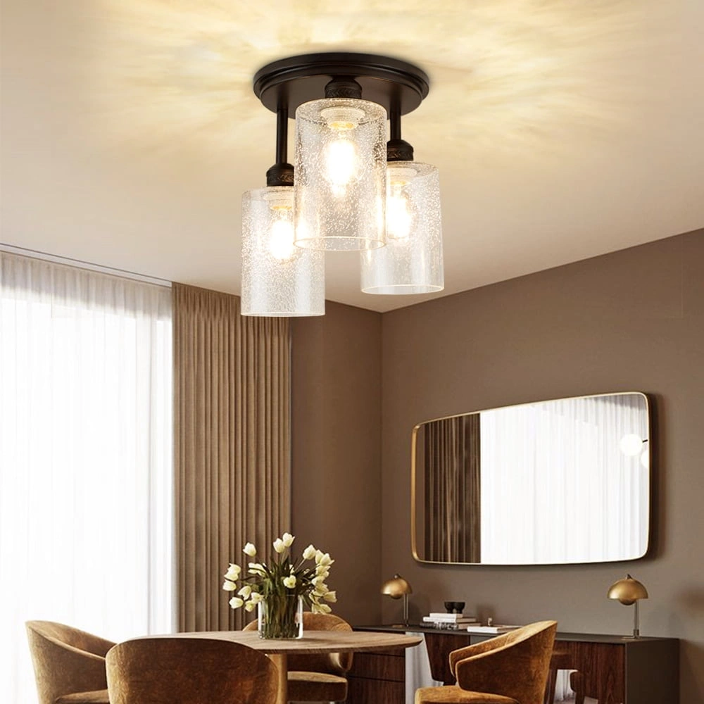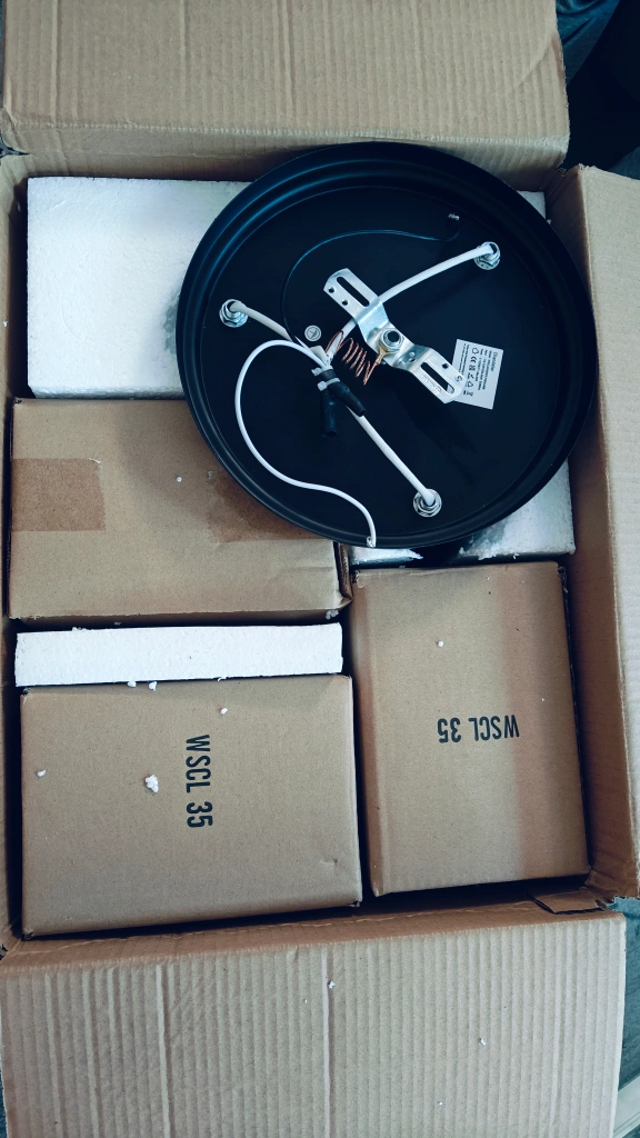 Selling a brand new WSCL 35 flush mount ceiling light! It comes in its original box with all components included. This stylish light fixture features a black base and clear glass shades, adding a touch of elegance to any room. The dimensions are approximately 12.71 inches in height and 9.64 inches in diameter.
