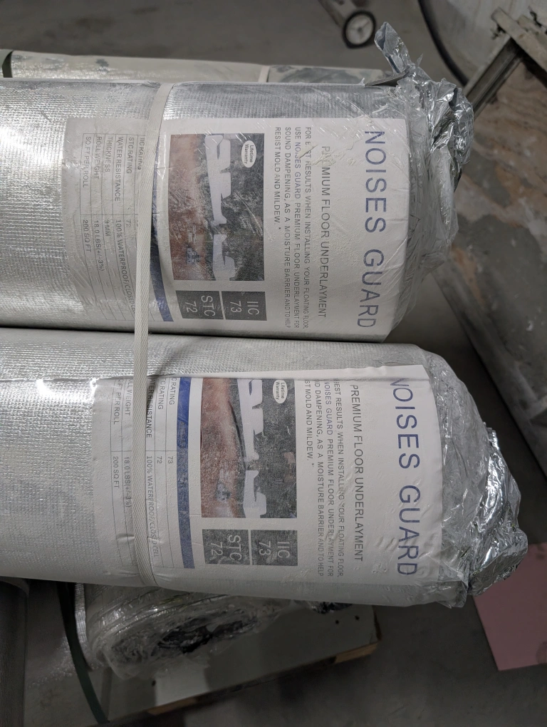 I have several rolls of Noises Guard premium floor underlayment for sale. This underlayment provides excellent results when installing flooring. It works as a moisture barrier and helps resist mold and mildew. 12 rolls for $500 or $50 each