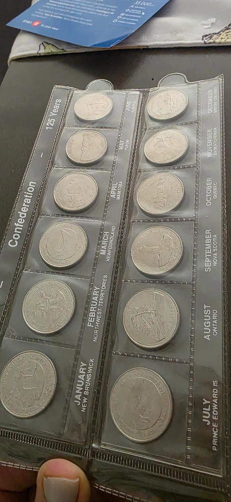 Selling a complete uncirculated collection of Confederation coins, commemorating 125 years. Each coin represents a different province and territory. A great addition for any coin collector! in original plastic sleeve.