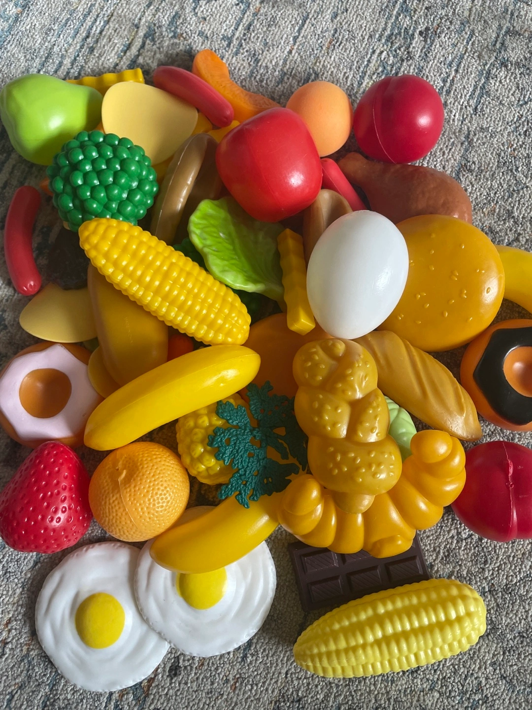 Selling a play food and kitchenware set for kids. Includes a variety of toy food items like fruits, vegetables, canned goods, and drinks. Also comes with pots, pans, plates, and utensils for imaginative play. Perfect for little chefs!