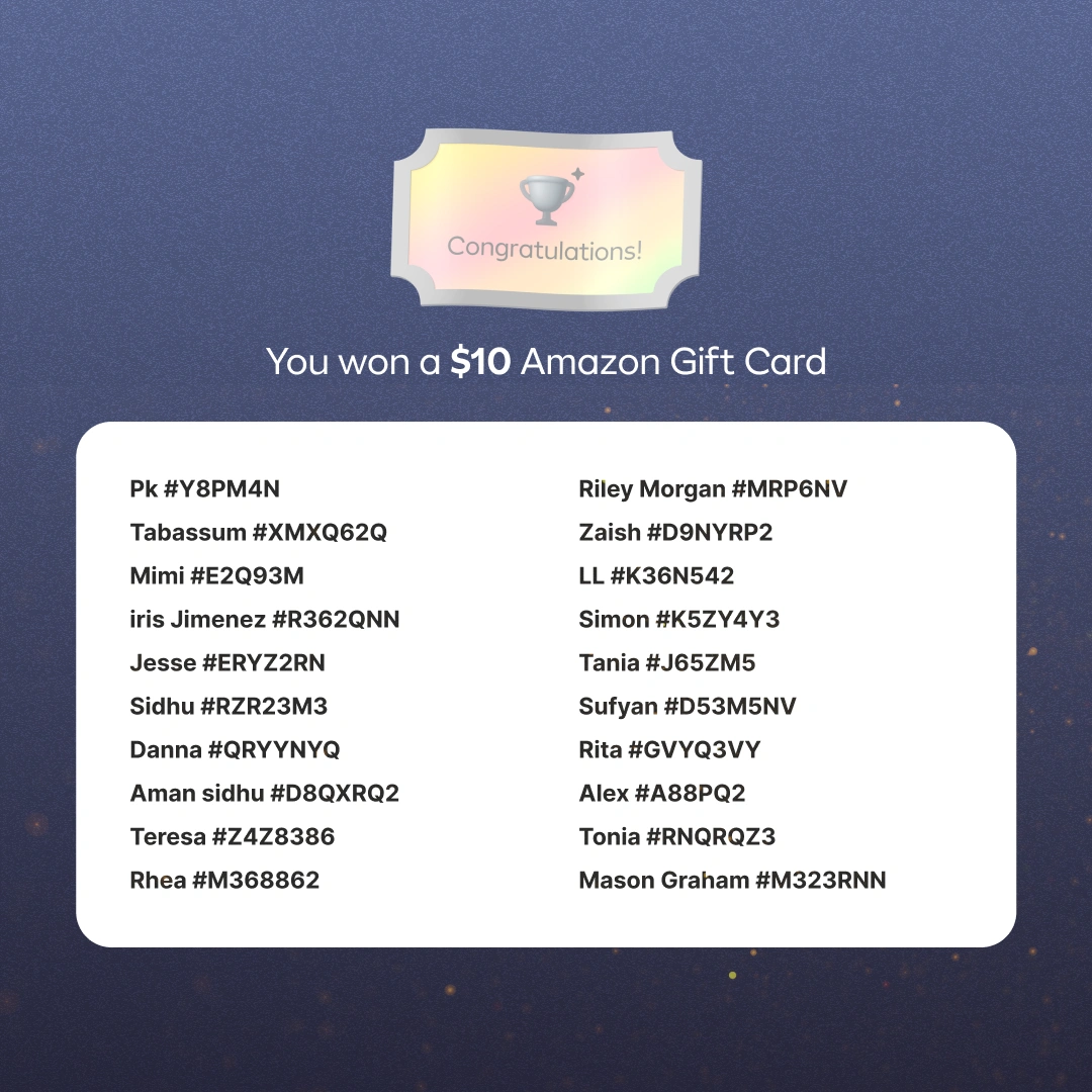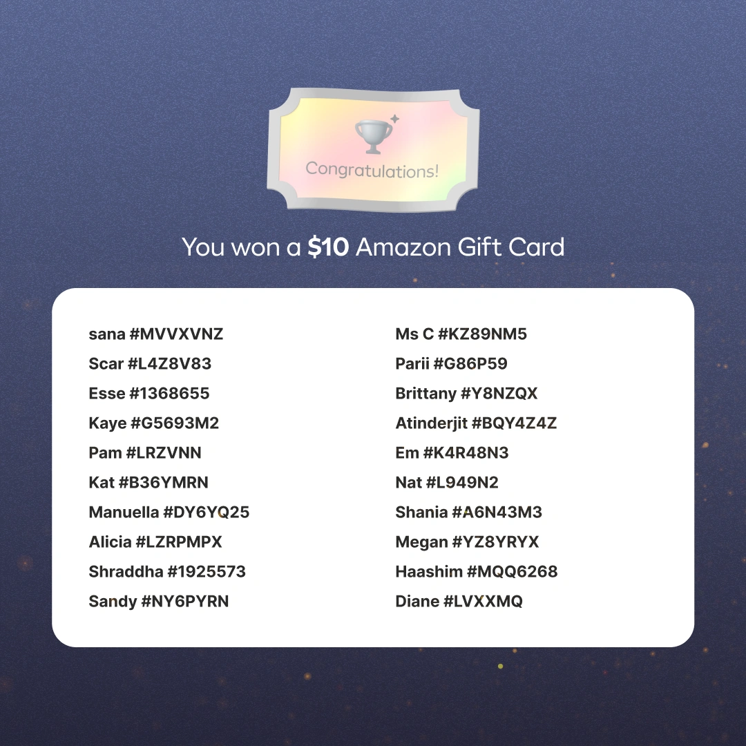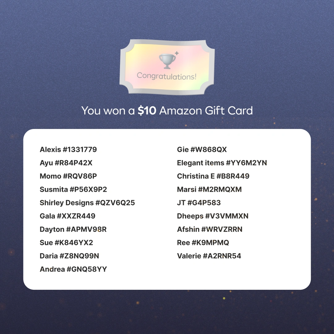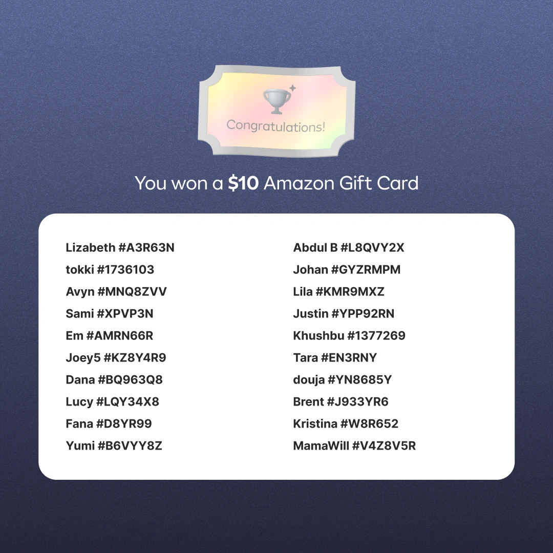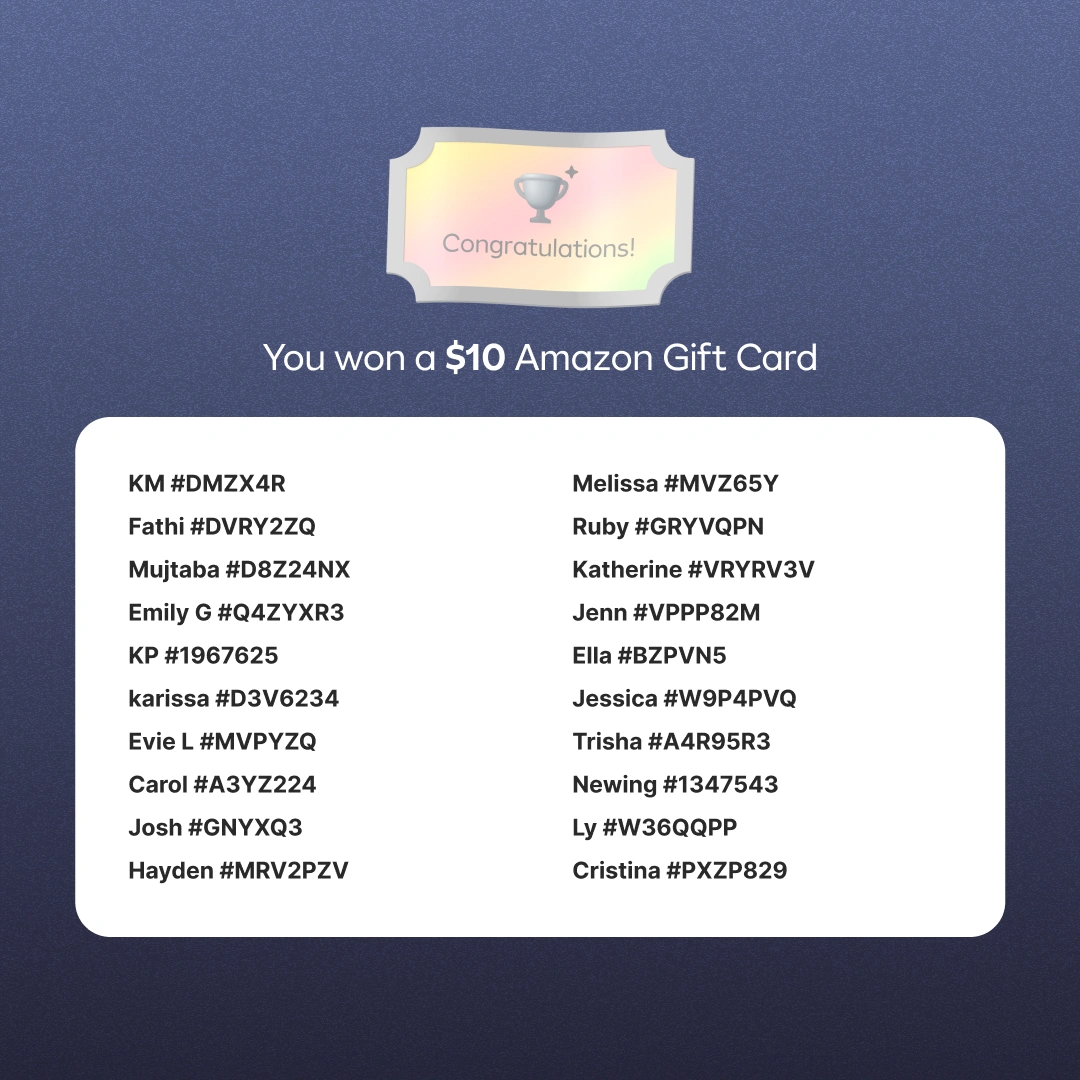 1000+Hey Karroters, Thanks for participating in our Special Scratch Card Edition of Freecycle 🎉 We appreciate everyone who participated this time, it was a great turnout! The winners have been revealed and gift cards have been distributed 🥳 Grand Prize winner - Please check your "Chats" tab for a message from The Karrot Team to claim your prize! Winners 1. Amazon gift card winners - Please check your "My Rewards" section in the app. Gift cards have all been sent out! 2. Share your excitement with the Karrot community in the comments down below! Don’t be discouraged if you didn't win this time, we run events at Karrot often! Remember that these events are about more than just the rewards. You’re making someone’s day and helping us build a more community-based marketplace. How did you like this version of the event? Let us know in the comments below 👇 Thanks for tuning in to this special Scratch Card event! 💗