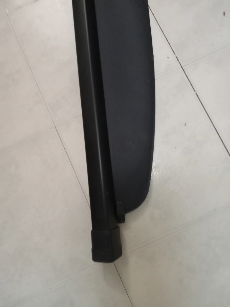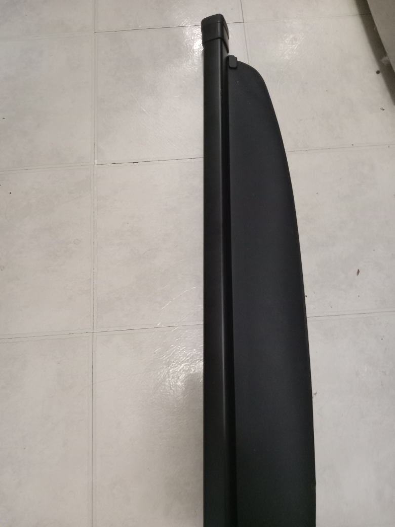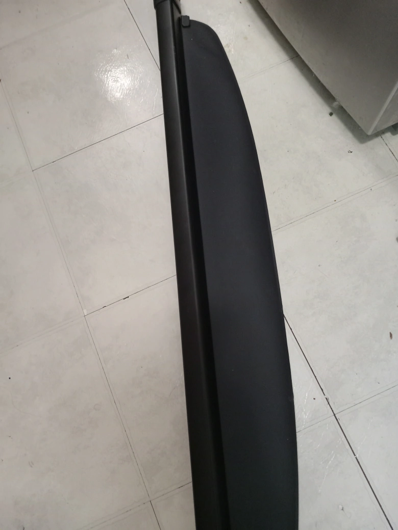 This is a black car trunk cargo cover. It looks to be in good condition and ready to use. It's great for keeping items in your trunk out of sight and secure