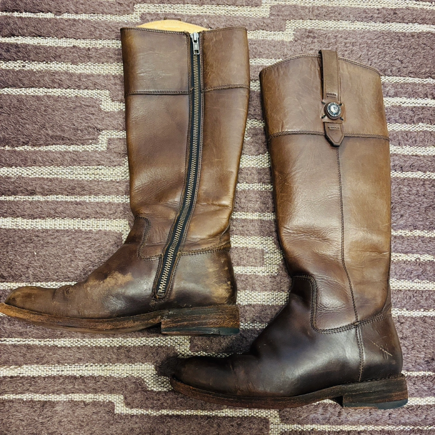 Selling a beautiful pair of Frye tall riding boots in size 6. They're a rich brown leather and have a zipper detail on one side. They have a rustic country look but are very clean inside and not worn much. Frye boots last very long as they’re incredibly well made. Originally over $600.