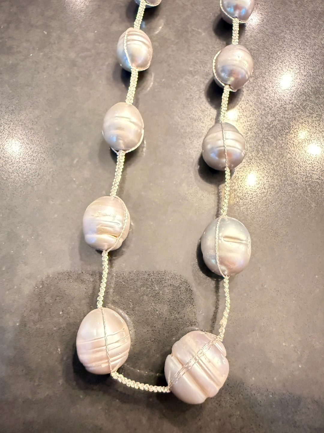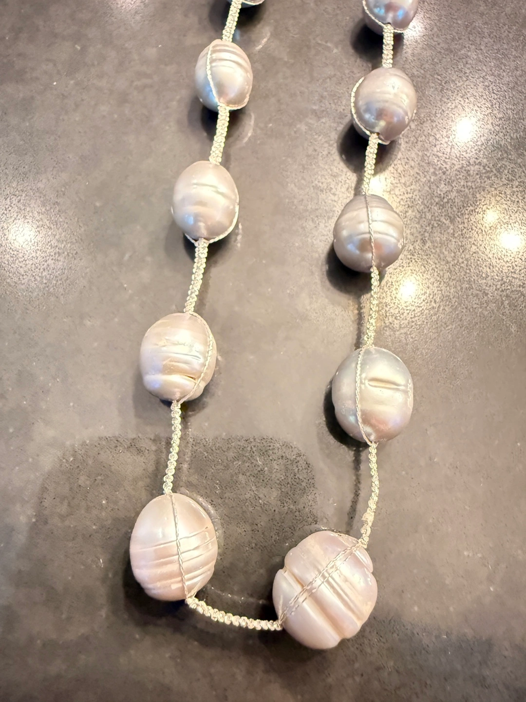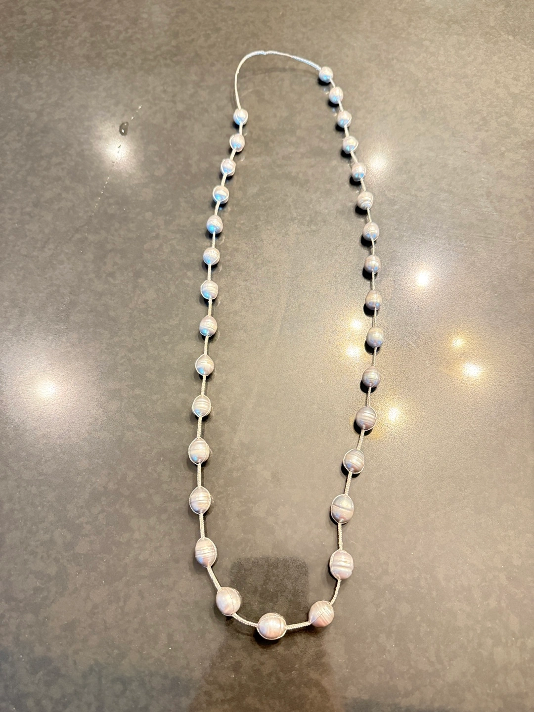 481A lovely pearl like necklace, approximately 17 inches in length. Perfect for adding a touch of elegance to any outfit!