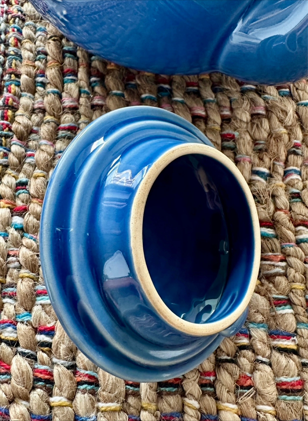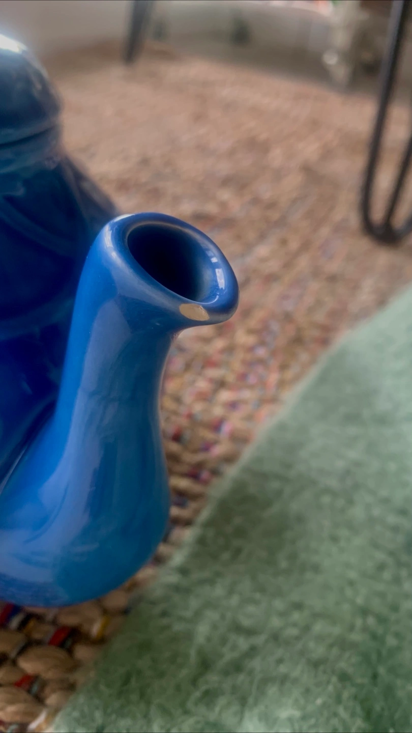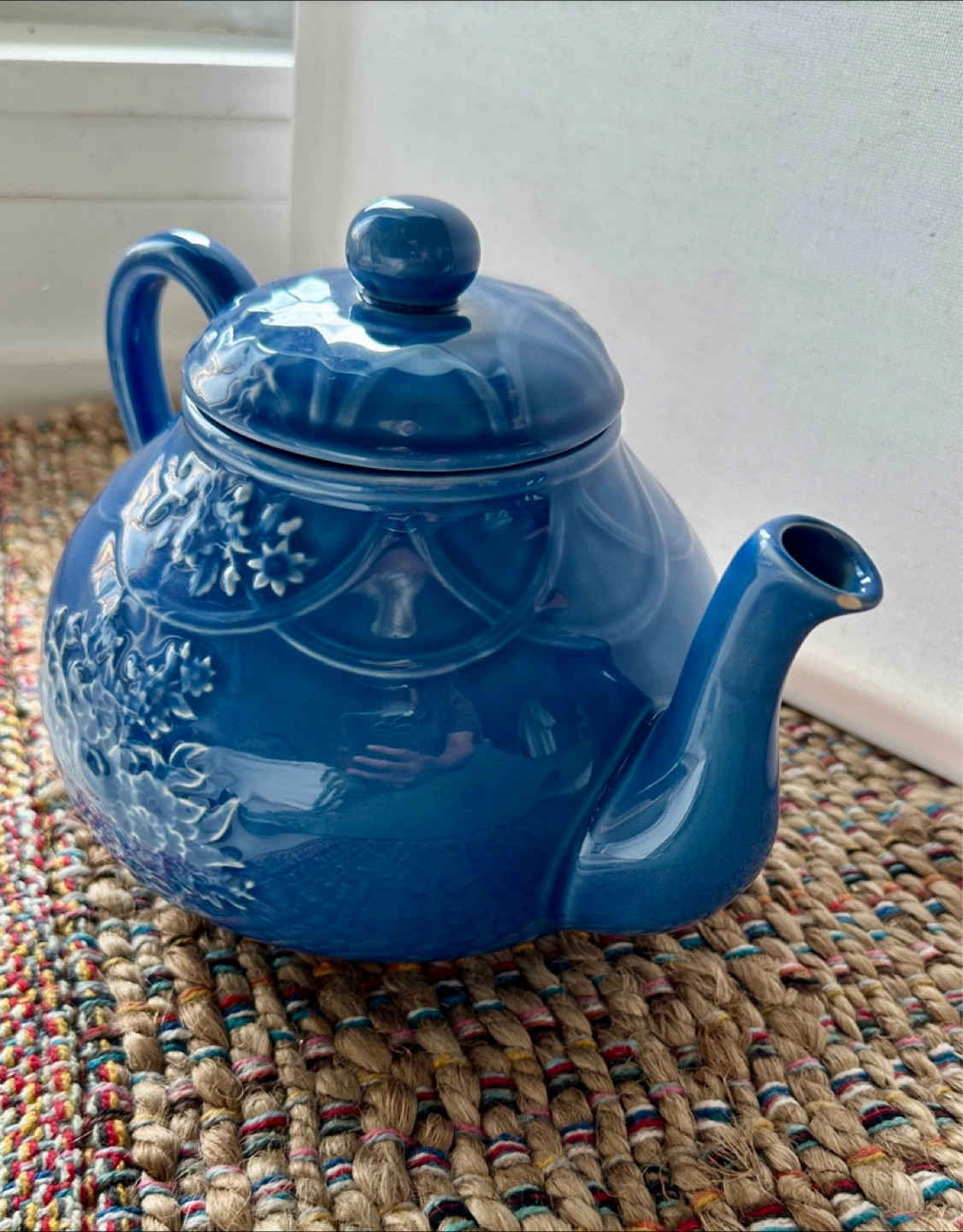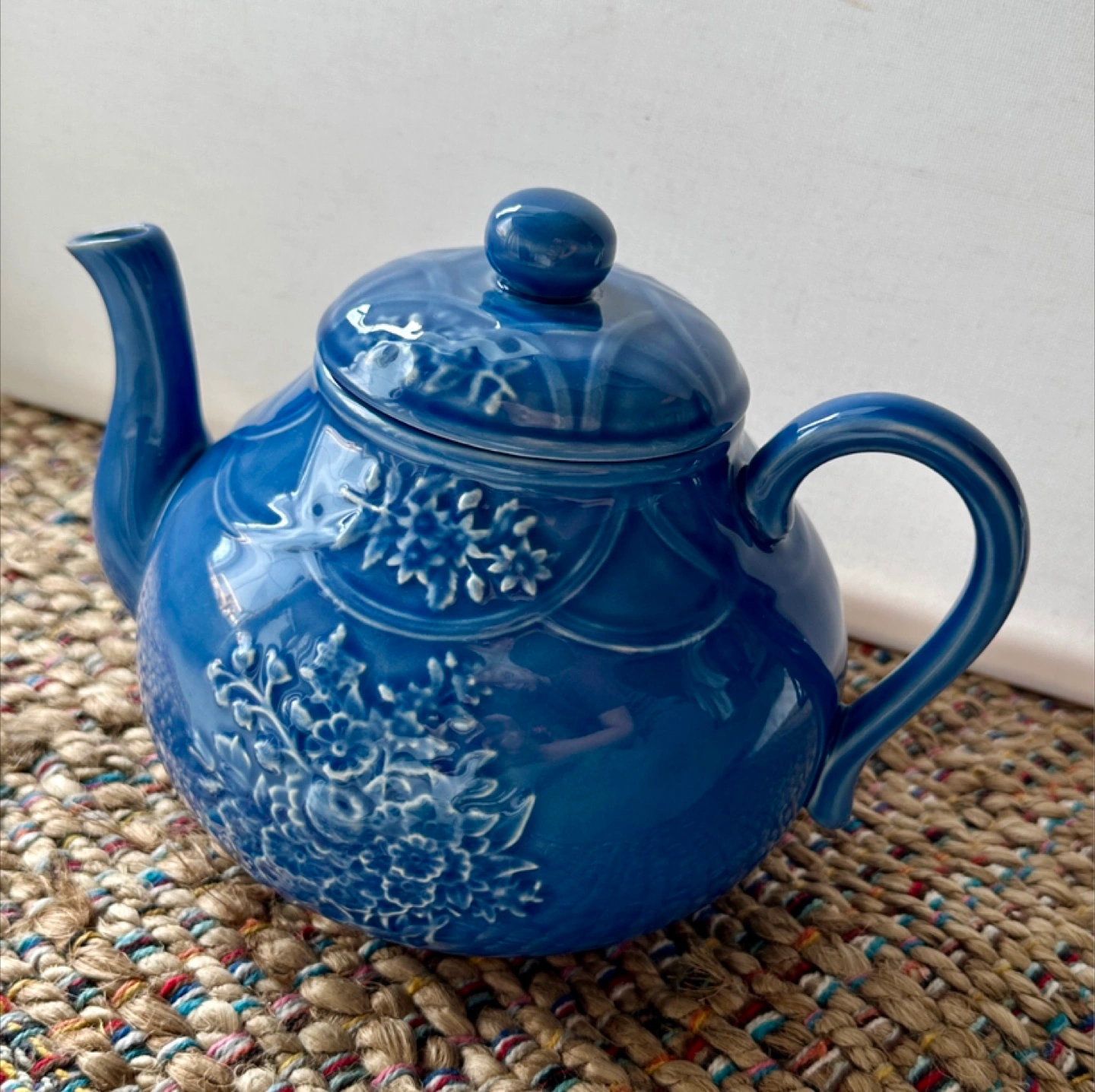 1000+Selling vintage blue teapot by Bordallo Pinheiro. It's made in Portugal and has a unique design. There is a small chip on the spout, as pictured.