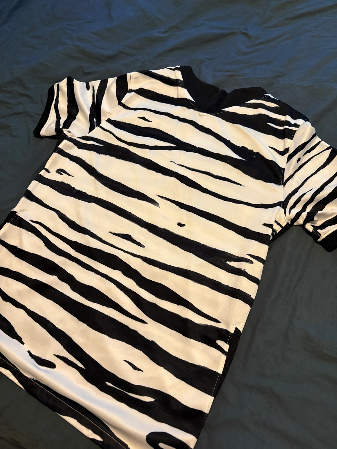 65The jersey features a unique tiger stripe design in black and white, with the Korea logo and Nike swoosh in gold. It's in great condition and perfect for any Korean soccer fan! Size is Large.